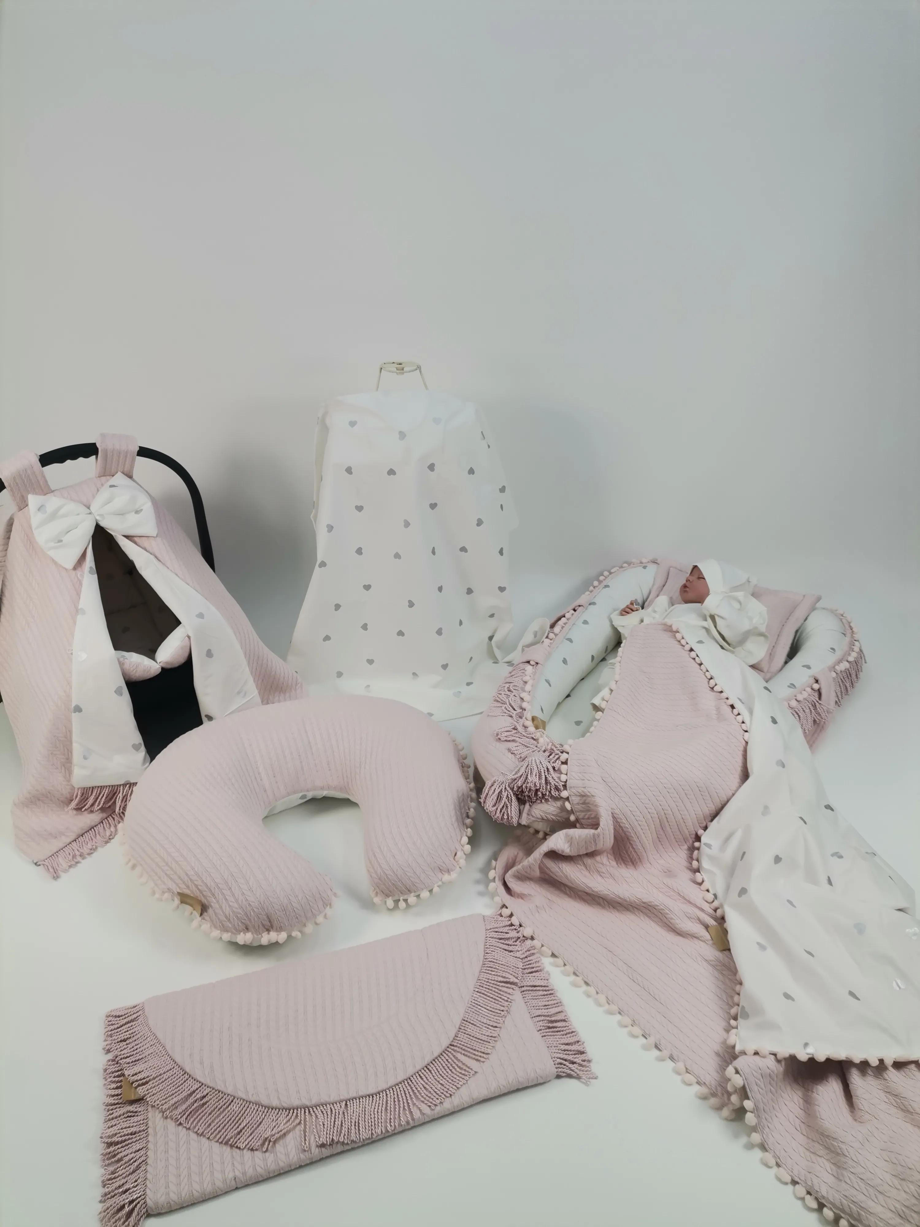 -Pembe Püsküllü Ponponlu Babynest (max. 2 yaşına kadar kullanılabilir, yastığı dahildir)