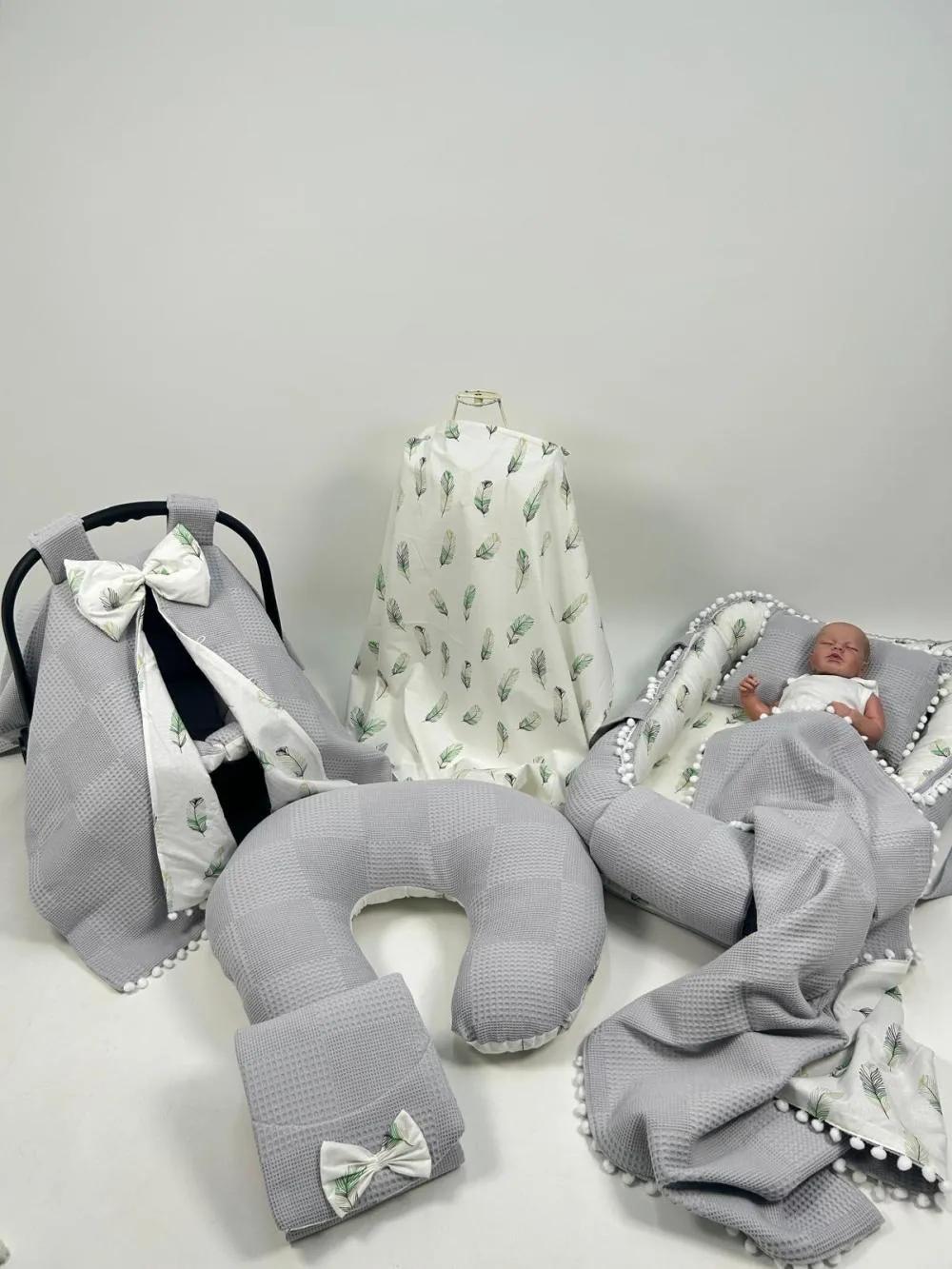 Waffle pike ile poplin kumaşlardan üretilen 8’li Set içeriği;