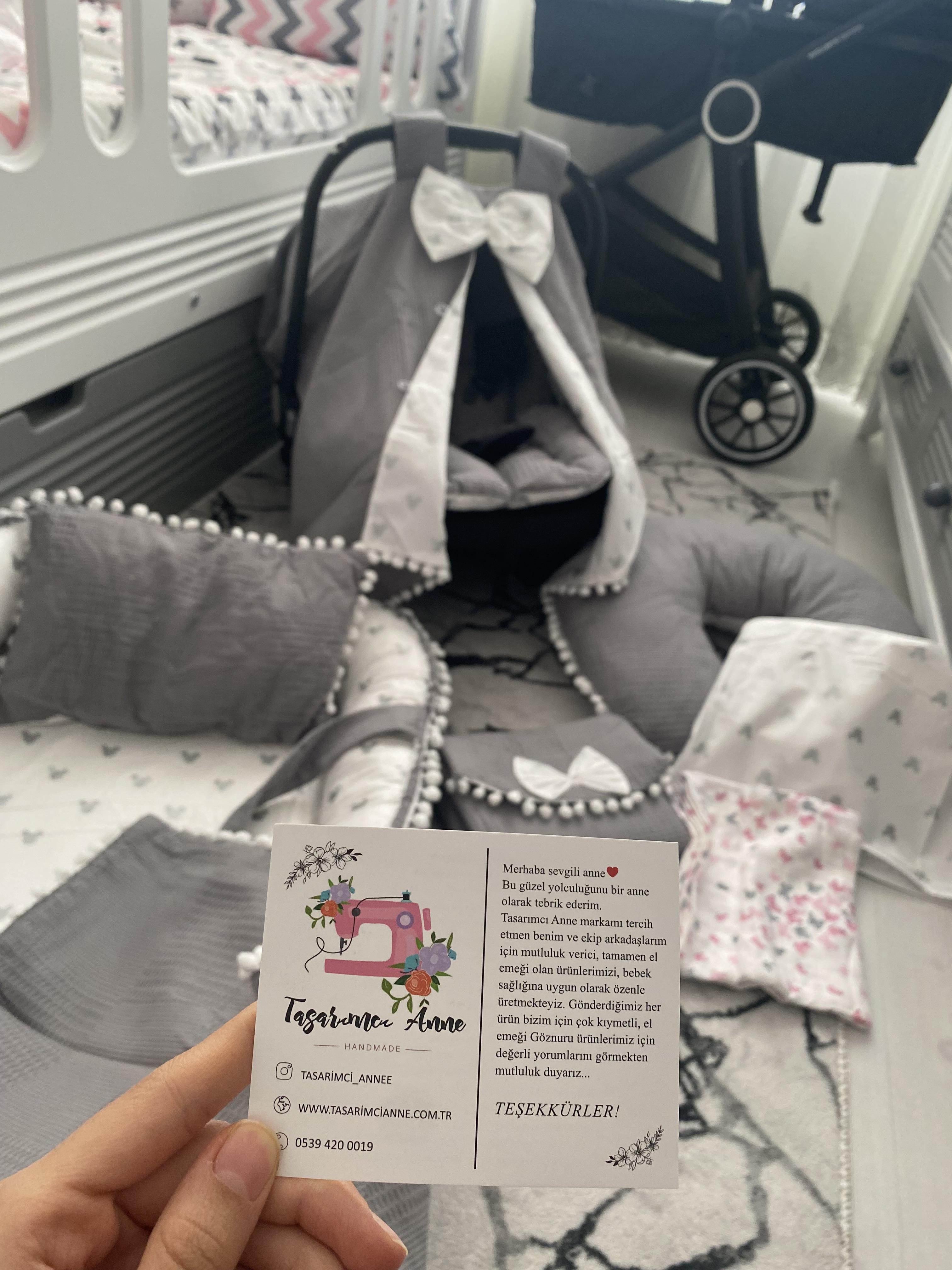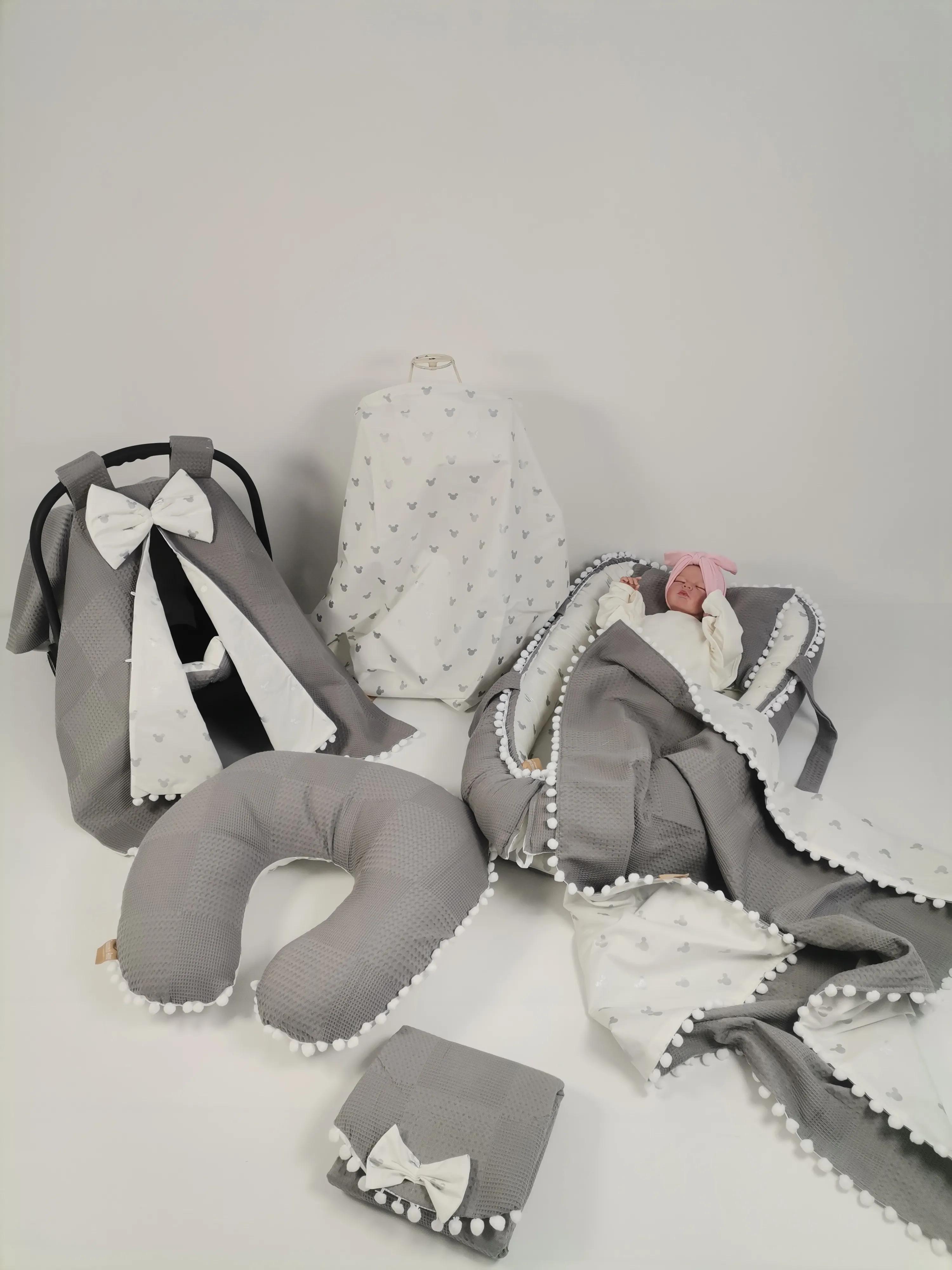 -Gri Ponponlu Babynest (max. 2 yaşına kadar kullanılabilir, yastığı dahildir)