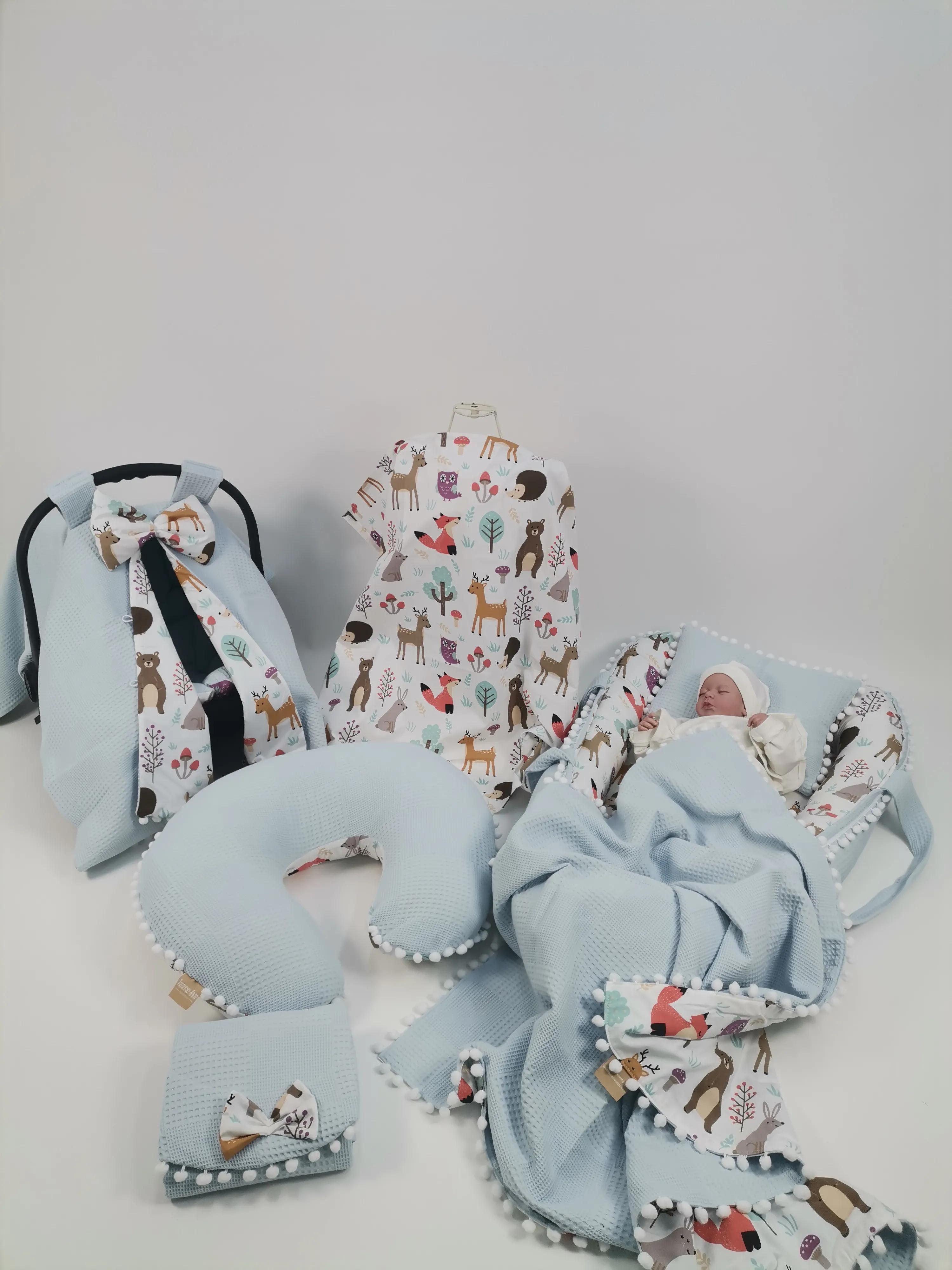 Babynest 8'li set mavi waffle pike - hayvan figürlü poplin