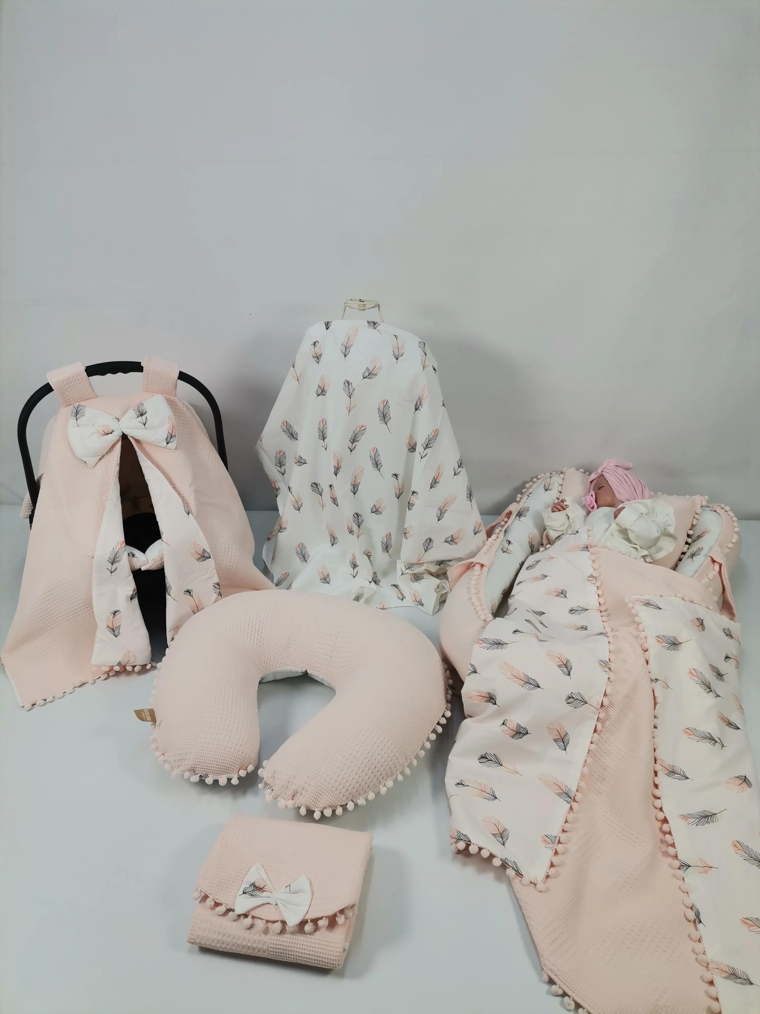 Somon Klasik Pike ile Pembe Tüy Desenli Poplin kumaşlardan üretilen 8 ’li Set içeriği;