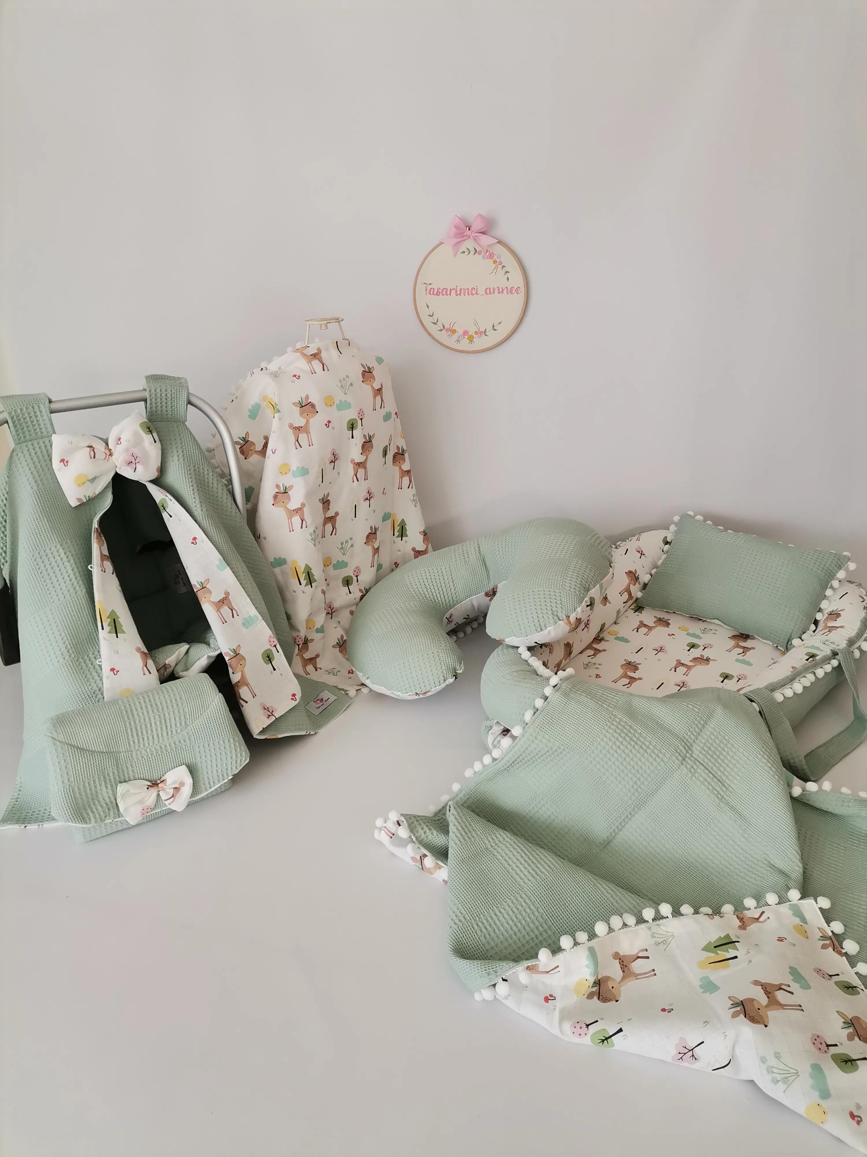 Waffle pike ve müslin kumaşlardan üretilen 8’li Set içeriği;