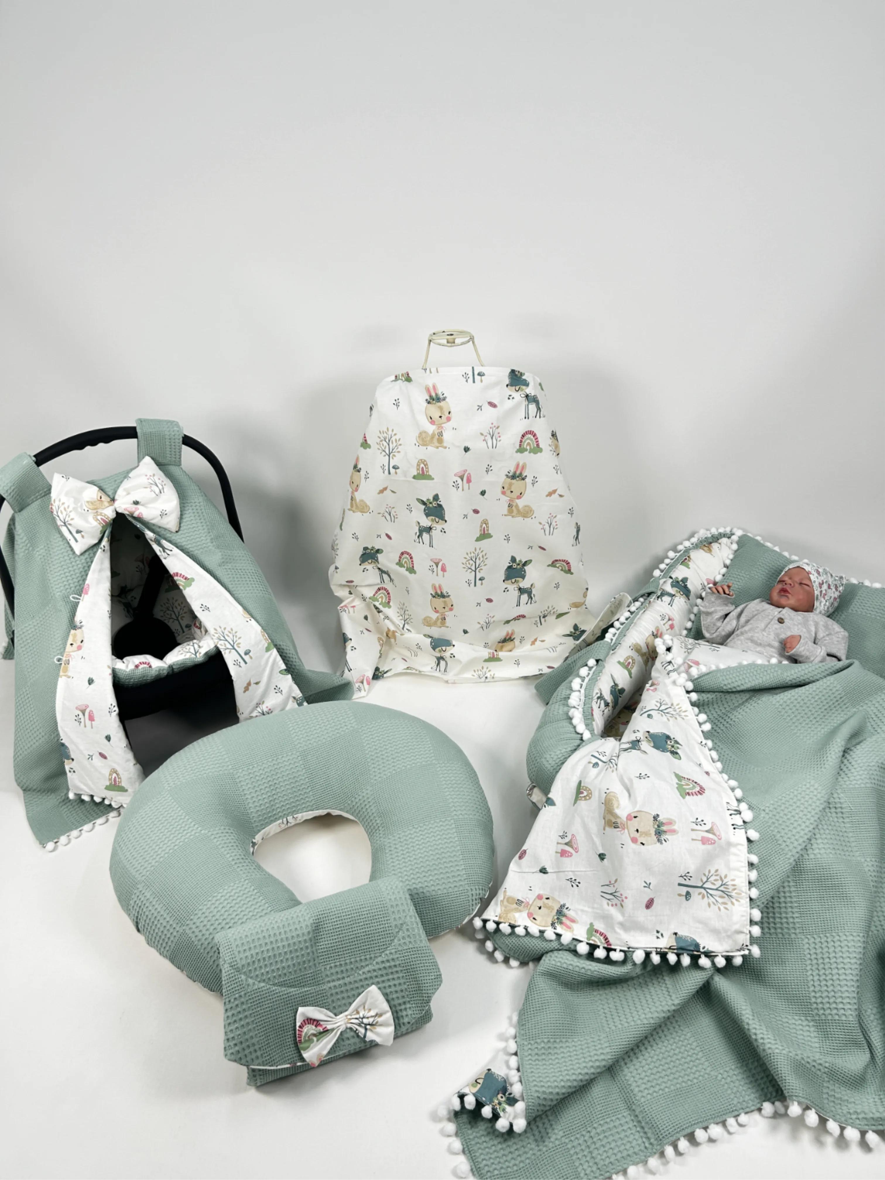 Babynest 8'li set yeşil waffle pike - yeni ceylanlı poplin