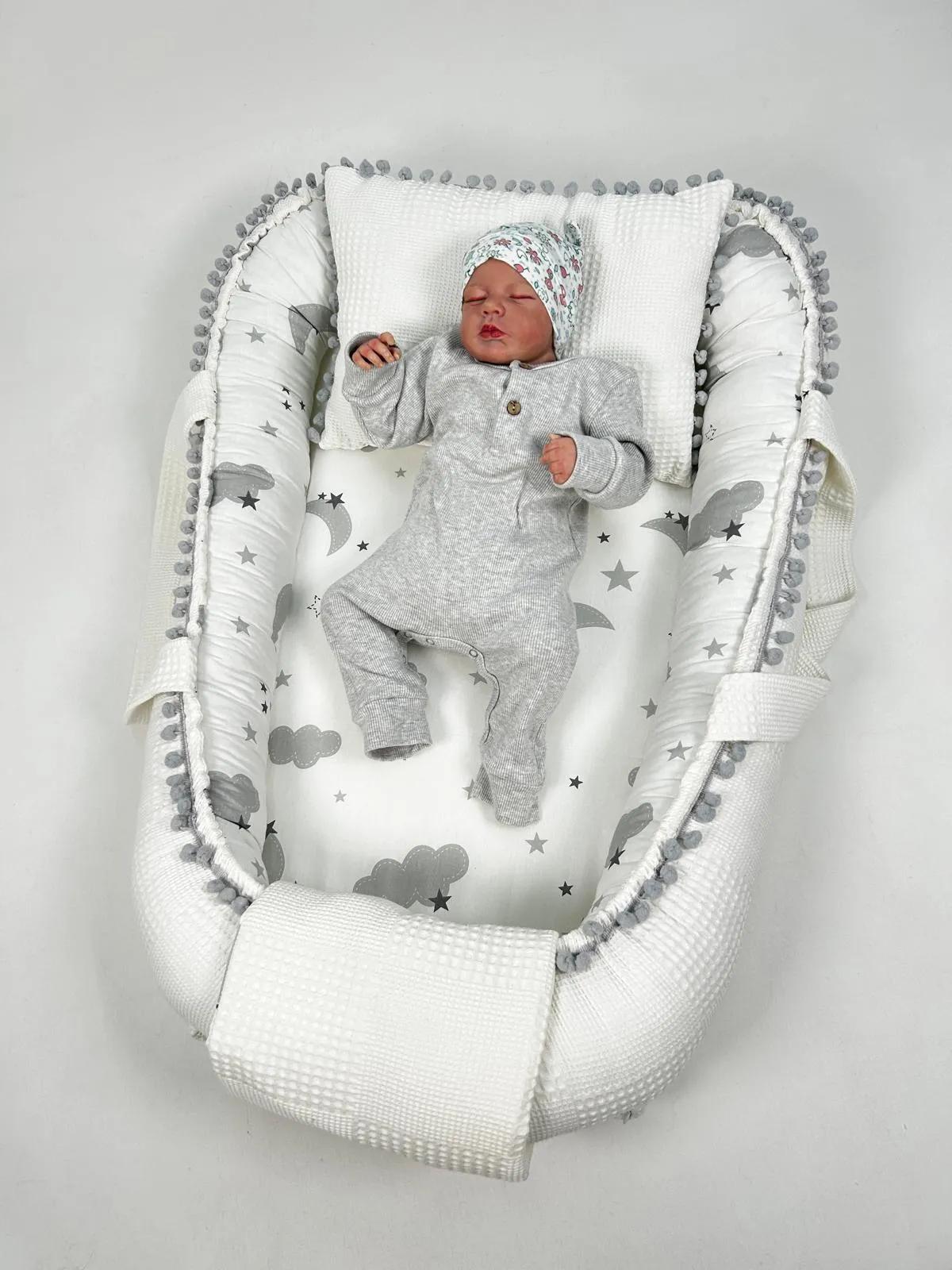 Waffle pike ve poplin kumaşlardan üretilen Ponponlu Babynestimiz ;