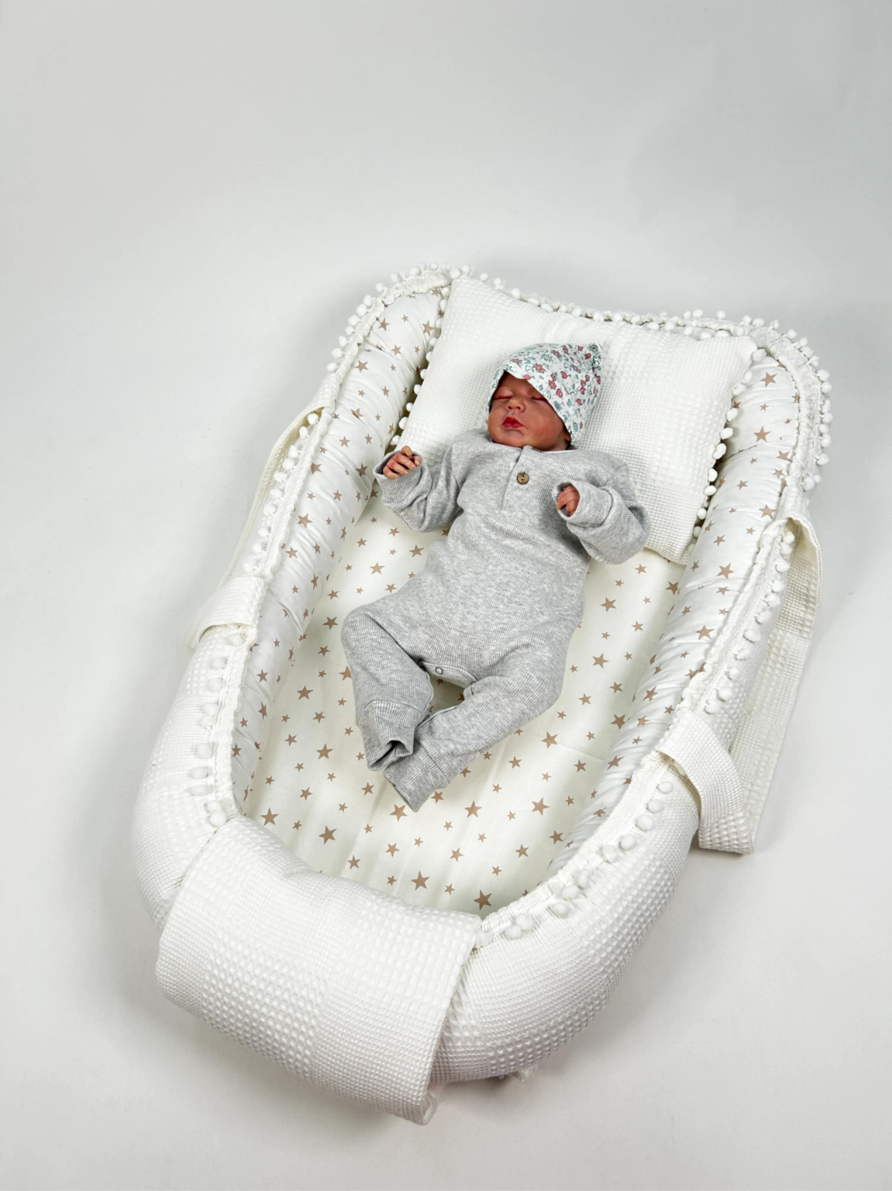 Waffle pike ve poplin kumaşlardan üretilen Ponponlu Babynestimiz ;