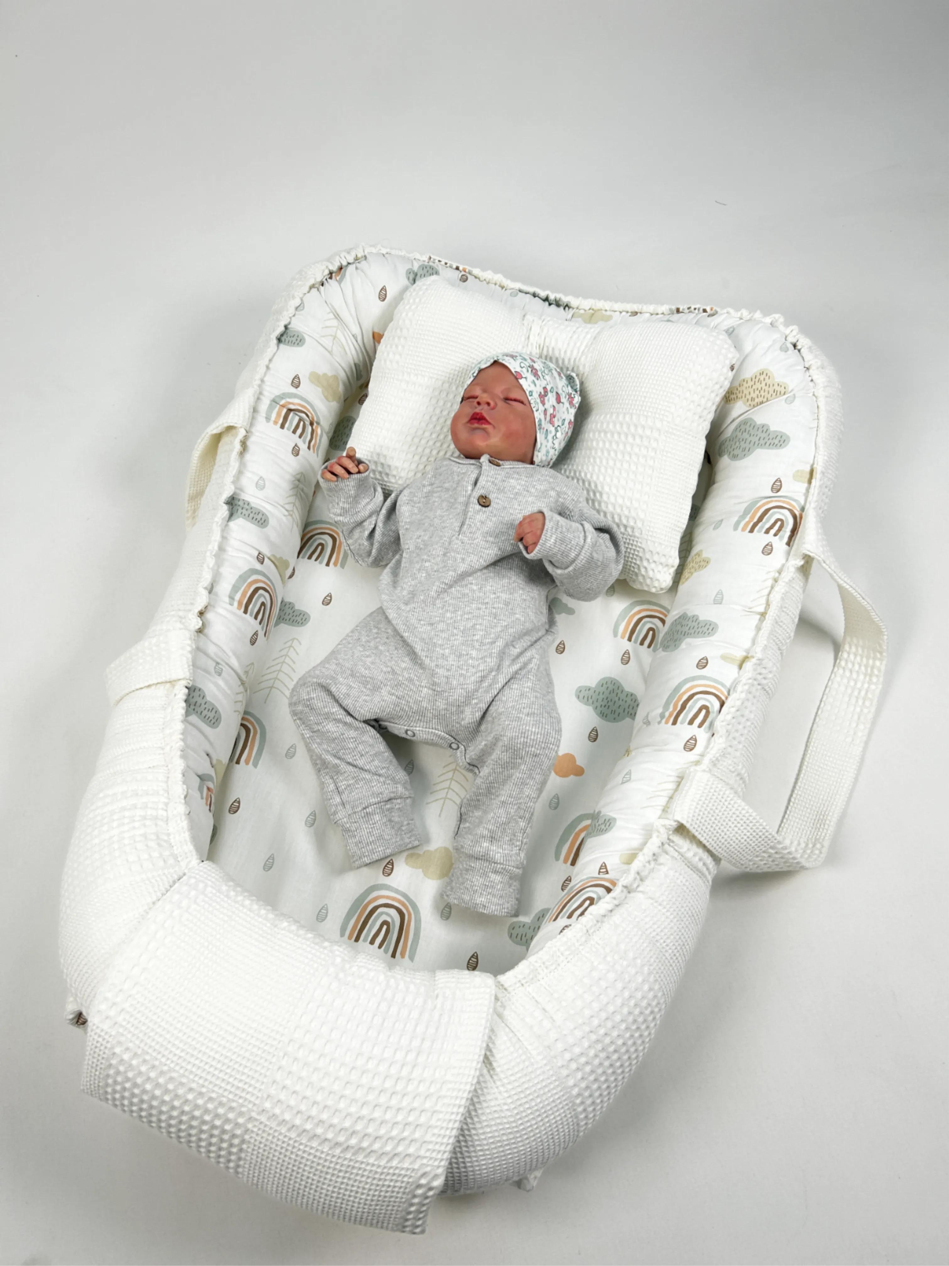 - Babynest bebeğinizi çevreleyerek ilk aylarda anne karnındaki güven hissini vererek her an her yerde sağlıklı ve konforlu bir uyku sağlar.