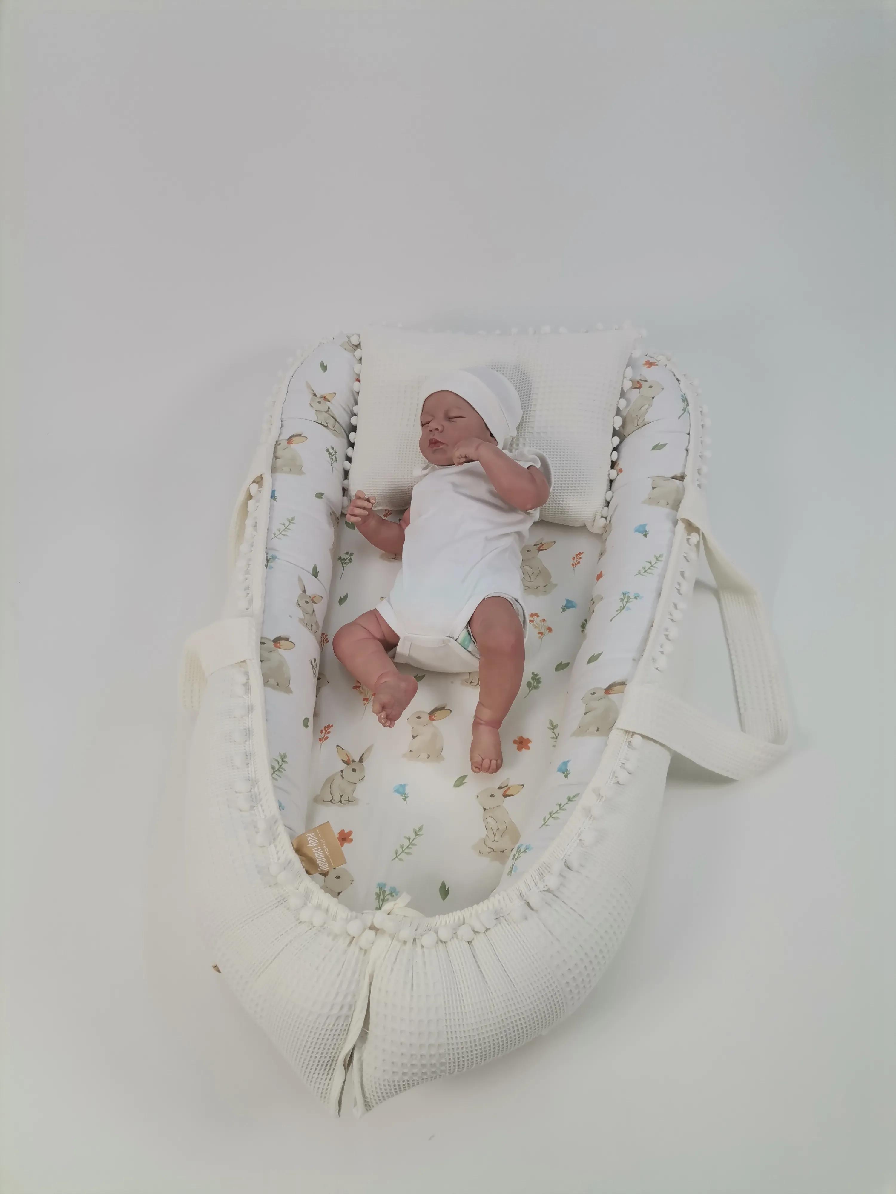 Waffle pike ve poplin kumaşlardan üretilen Ponponlu Babynestimiz ;