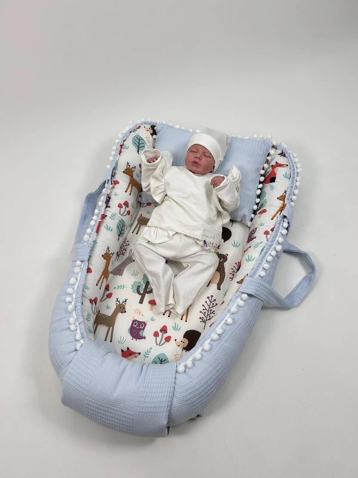 Babynest mavi waffle pike - hayvan figürlü poplin