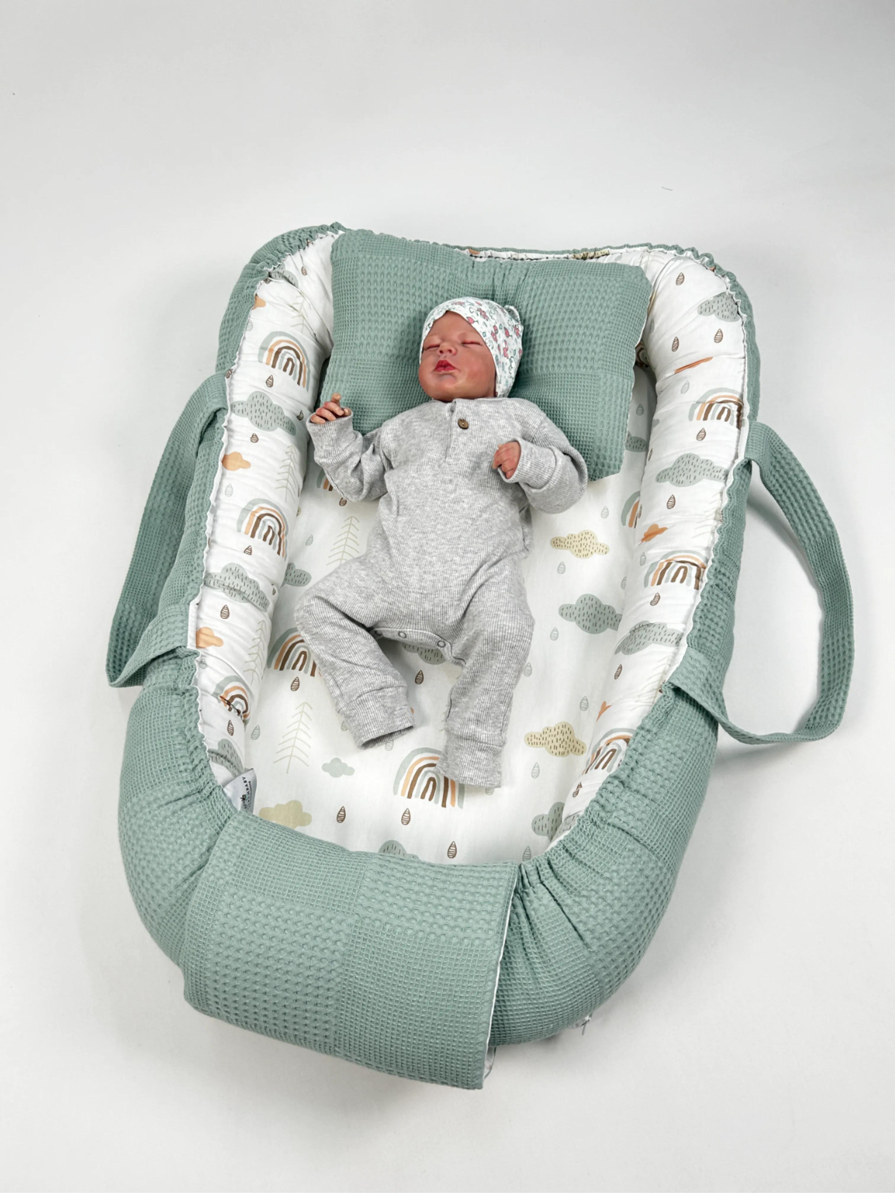 Babynest yeşil waffle pike - gökkuşaklı poplin 2