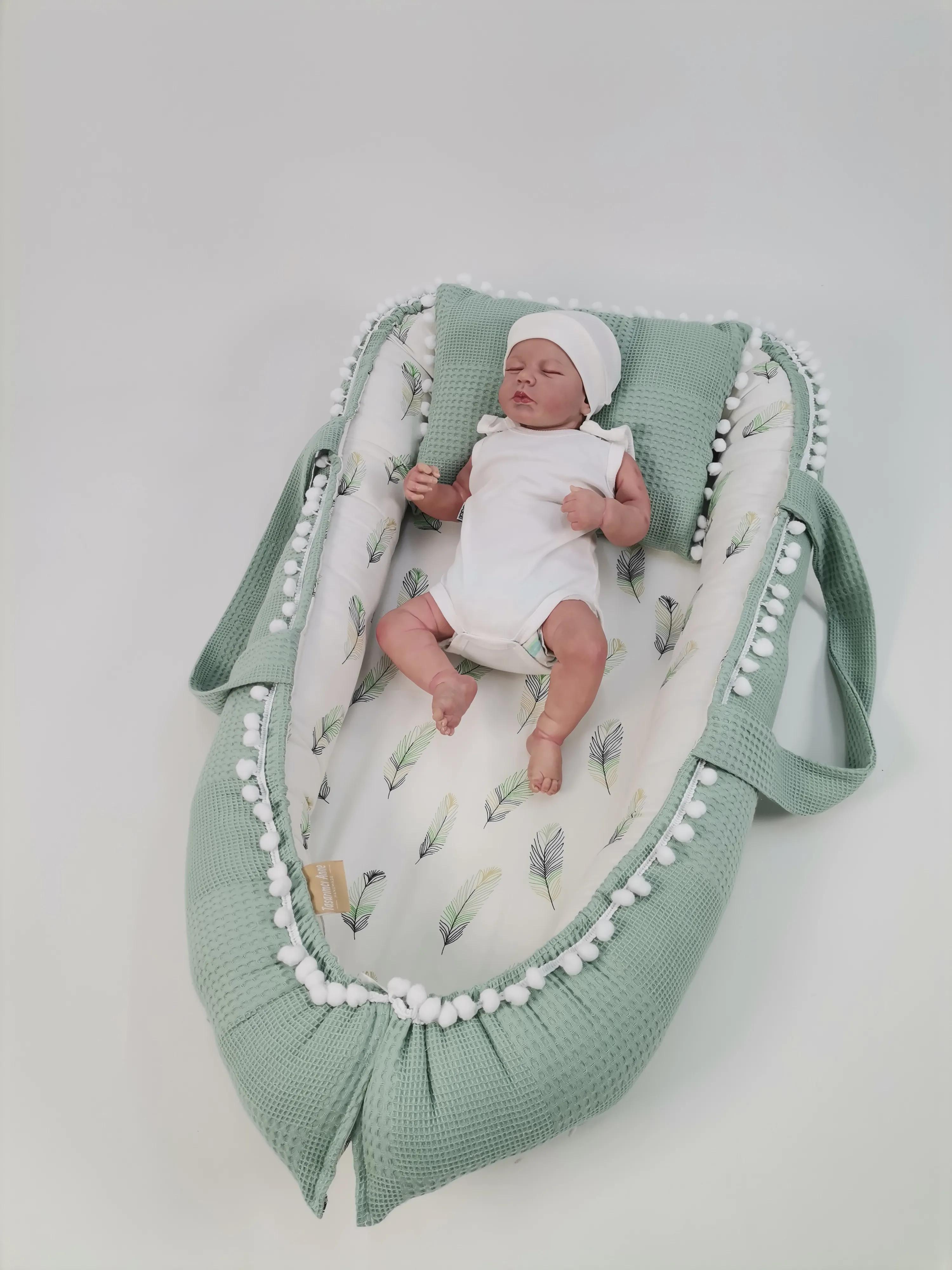 Yeşil waffle pike ve yeşil tüylü poplin kumaşlardan üretilen beyaz ponponlu Babynestimiz ;