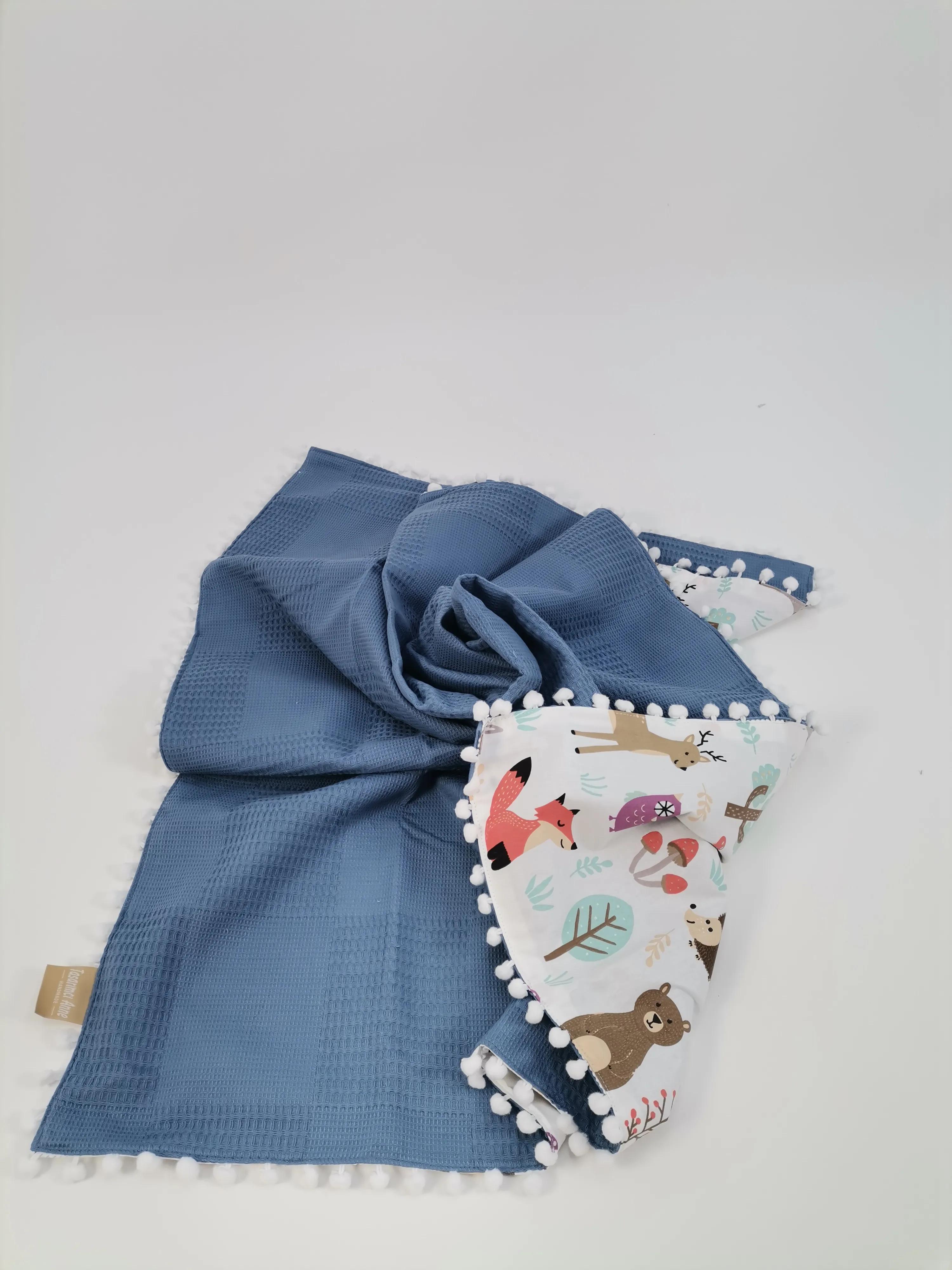 Waffle klasik pike ve poplin kumaştan üretilen Ponponlu Battaniye