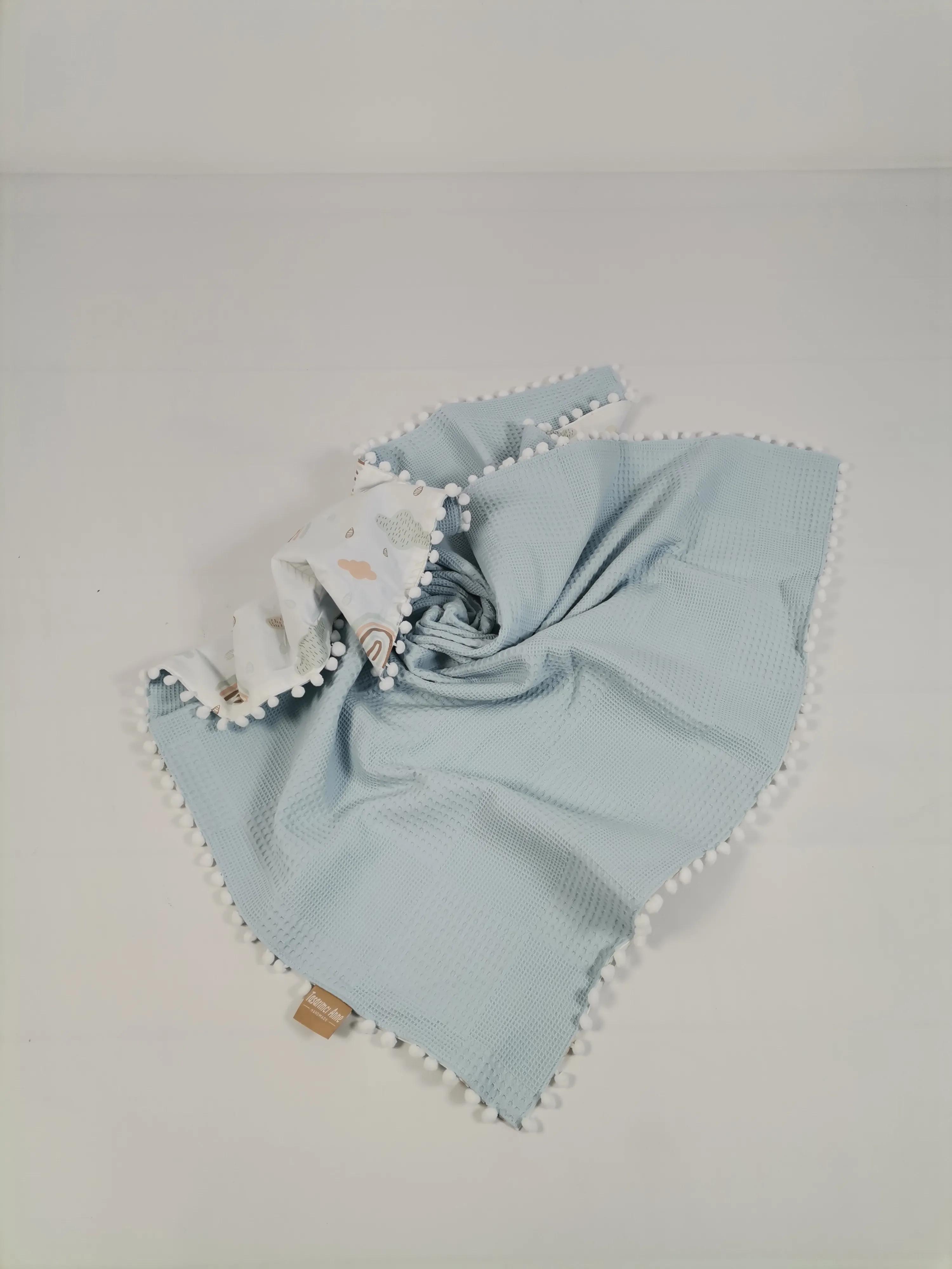 Waffle klasik pike ve poplin kumaştan üretilen Ponponlu Battaniye