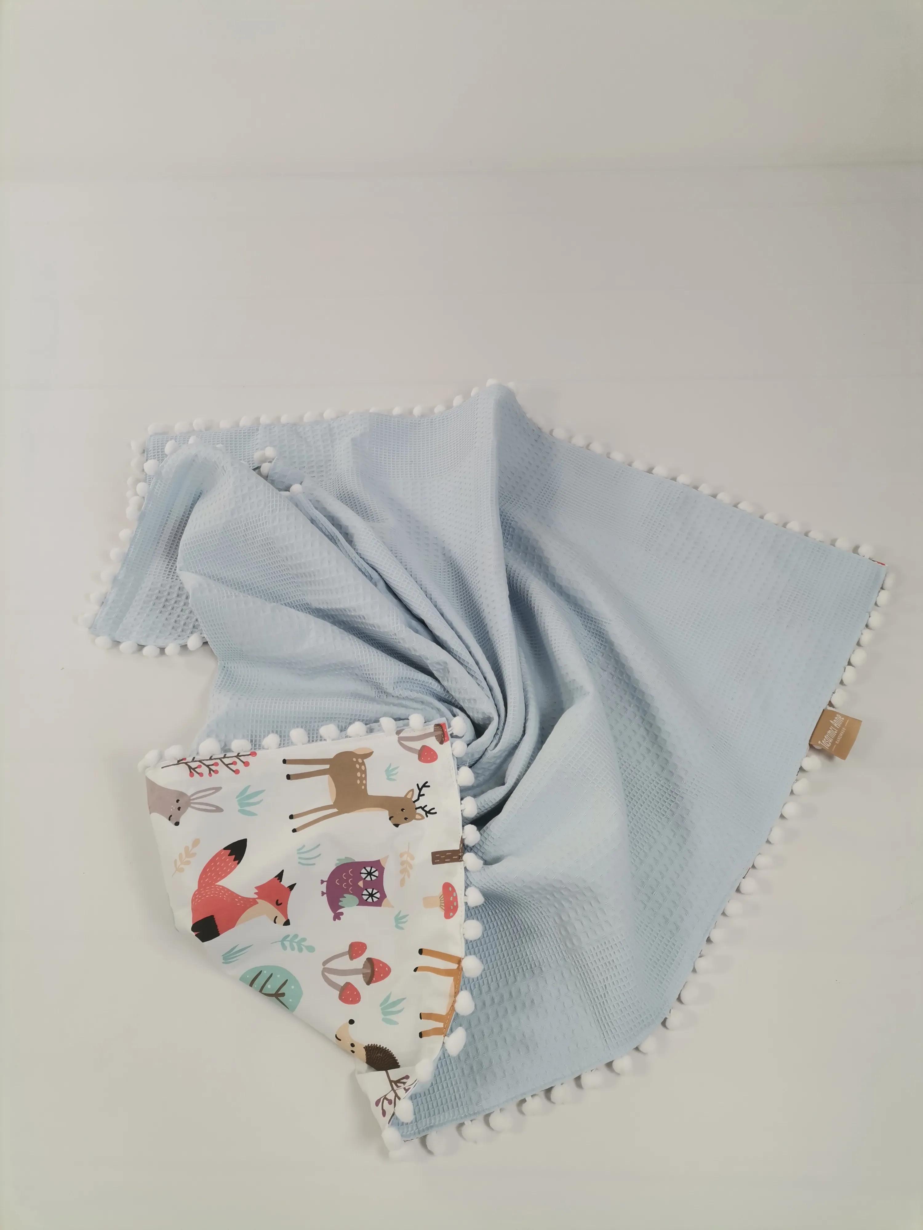 Battaniye mavi waffle pike - hayvan figürlü poplin