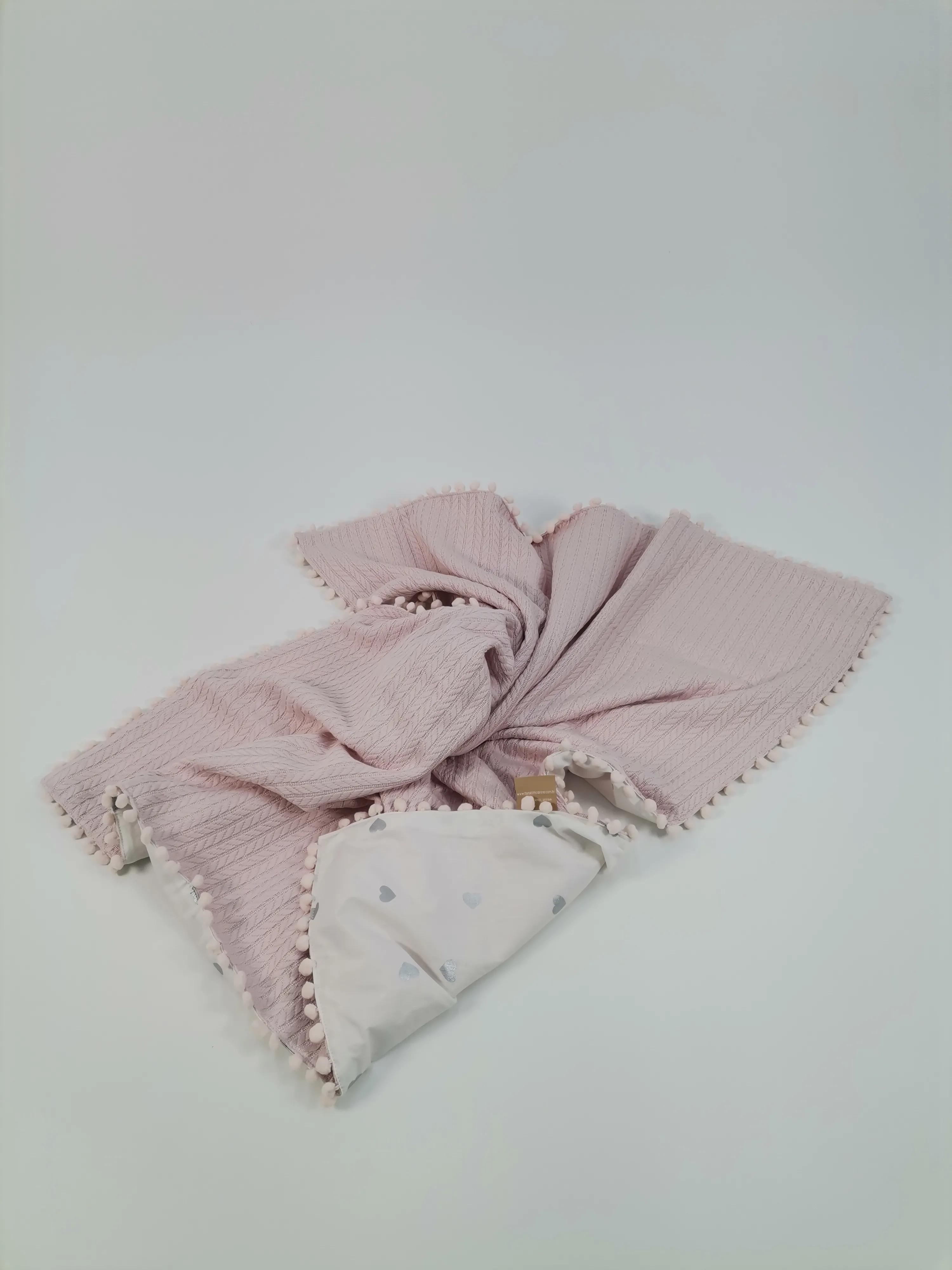 Battaniye pudra örgü pike - gümüş kalpli poplin