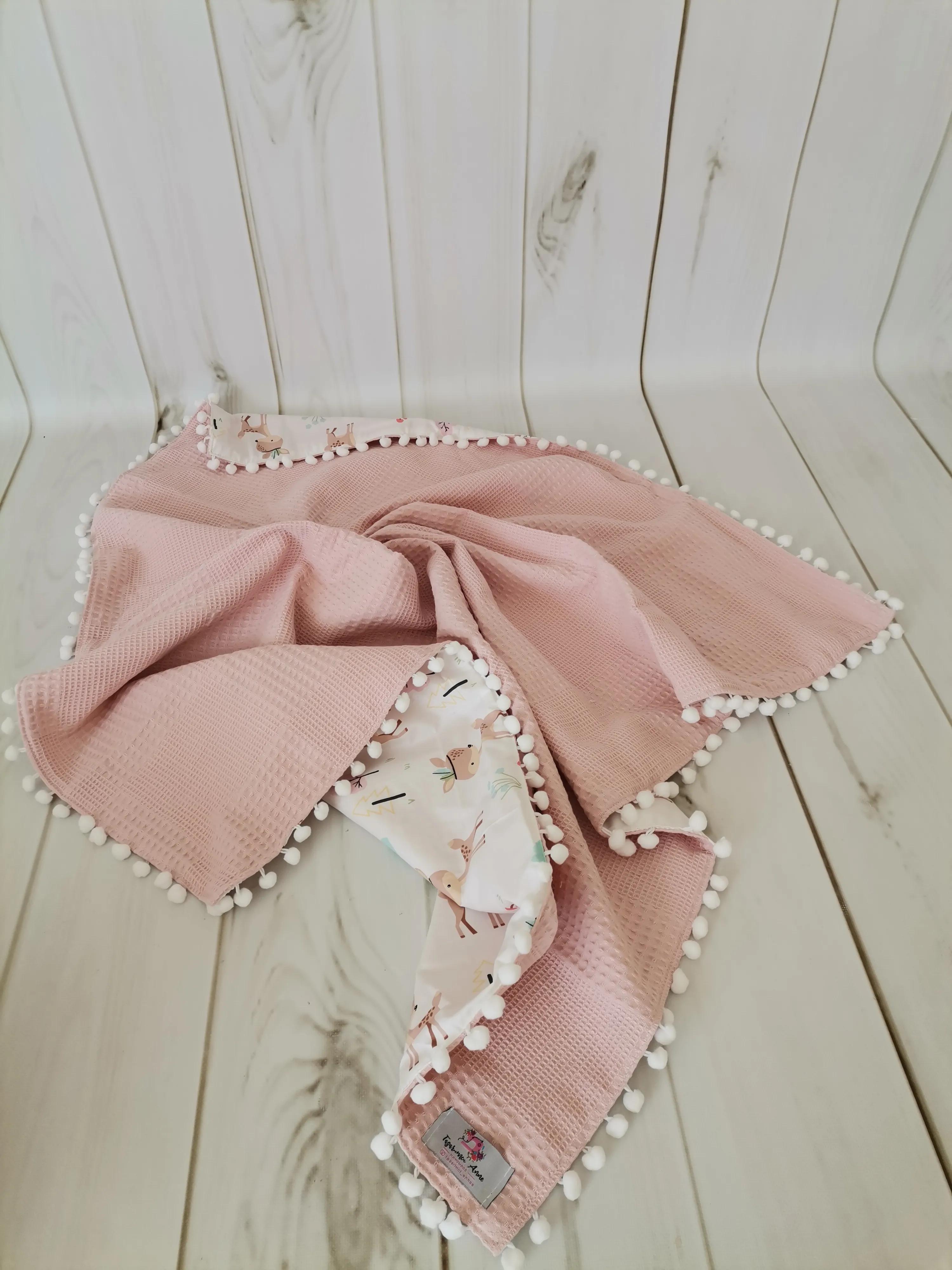 Battaniye pudra pembe waffle pike - karacalı poplin