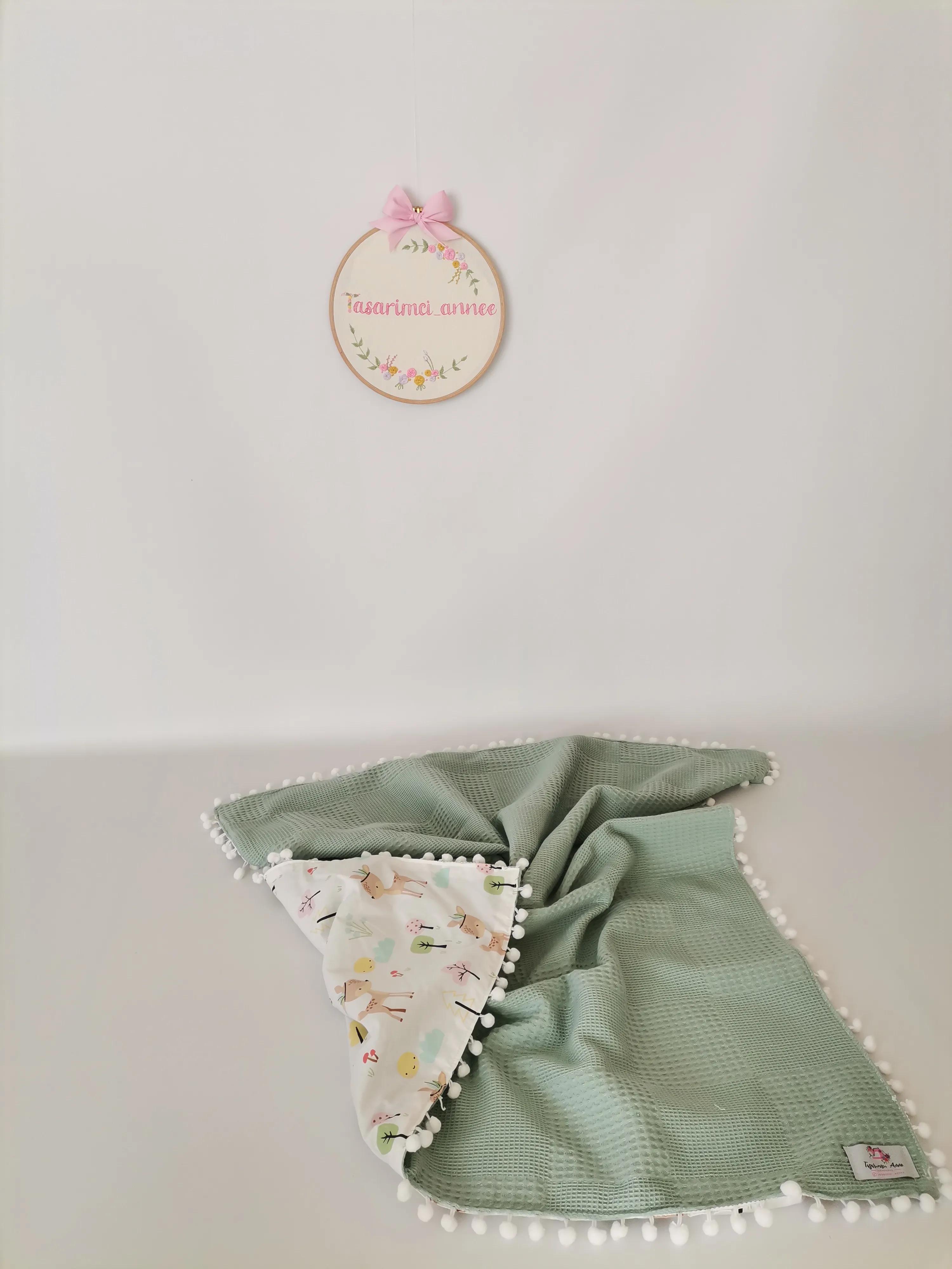 Waffle klasik  pike ve poplin  kumaştan üretilen Ponponlu Battaniye