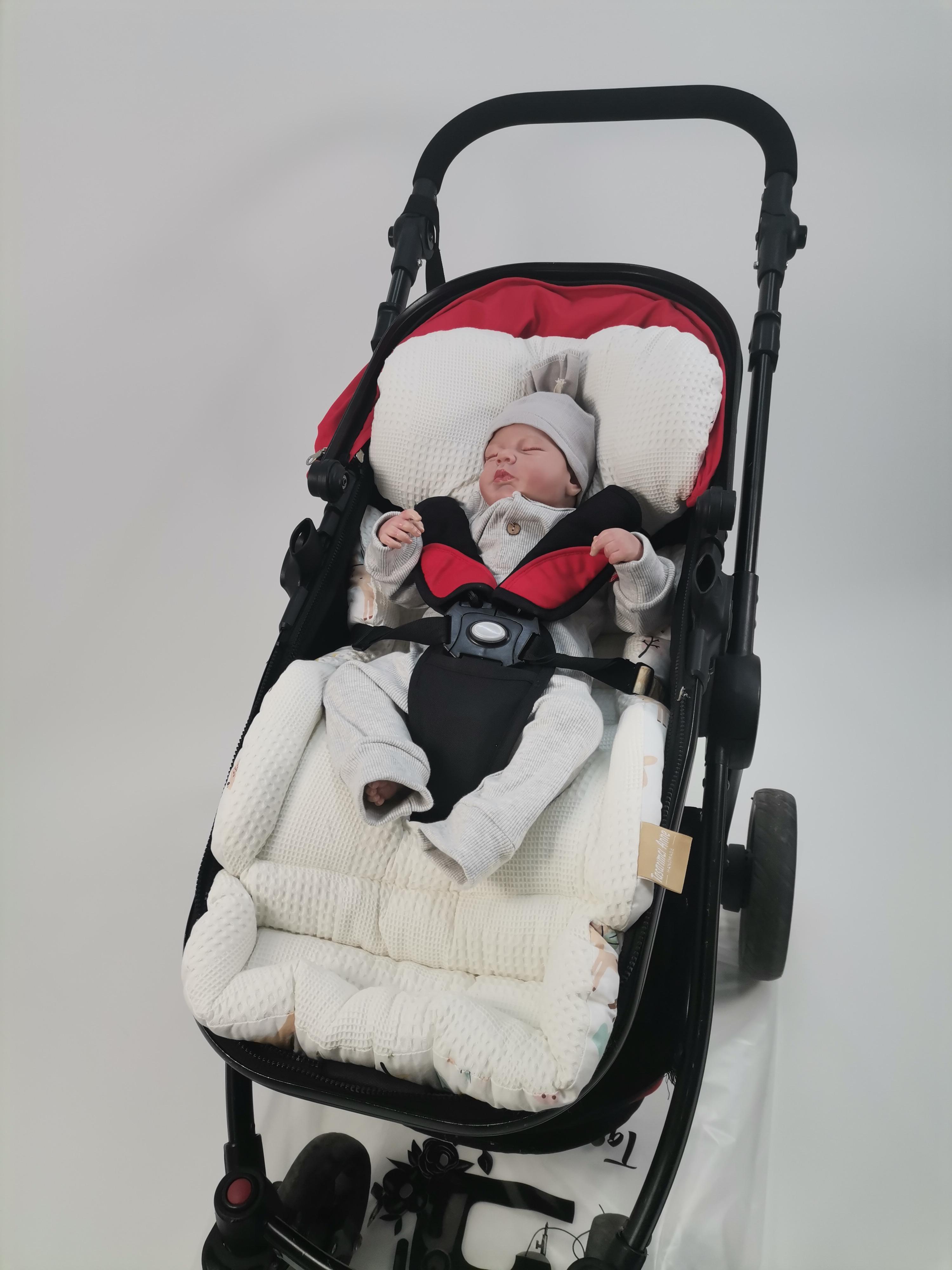 Waffle pike ve poplin kumaştan üretilen bebek arabası minderlerimiz;
