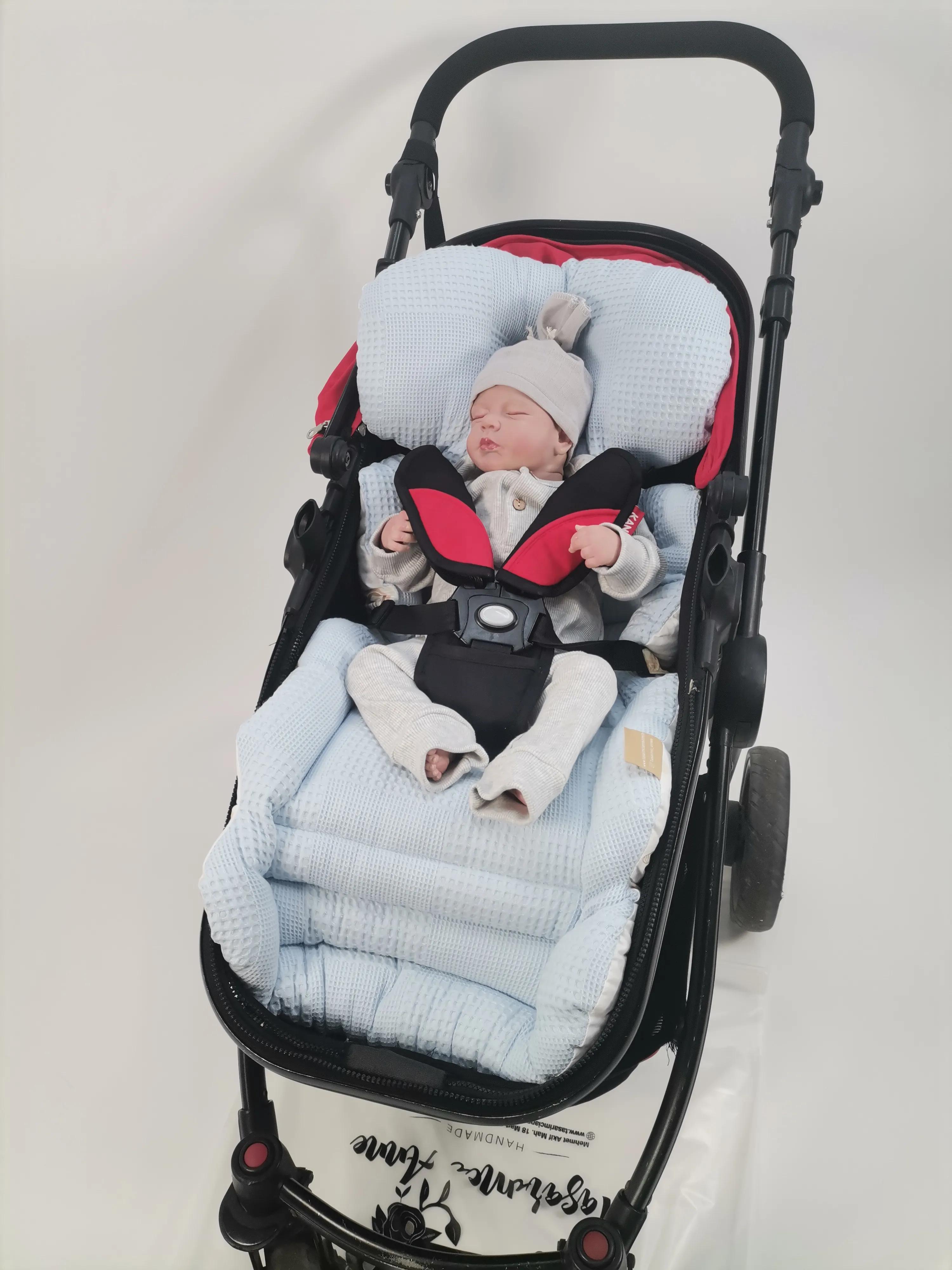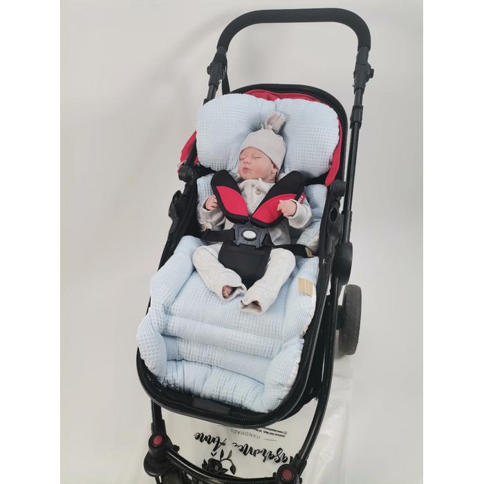 Waffle pike ve poplin kumaştan üretilen bebek arabası minderlerimiz;