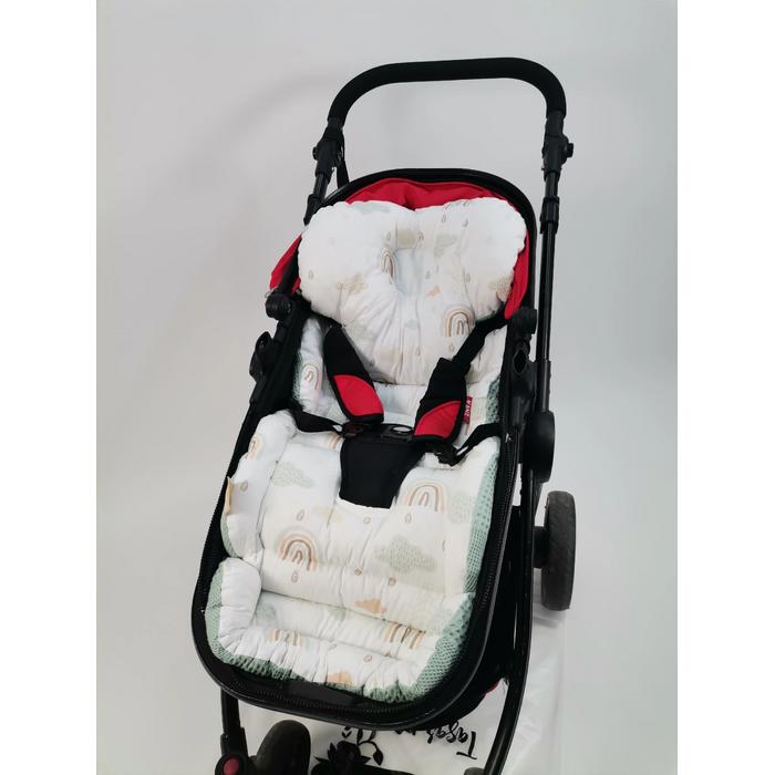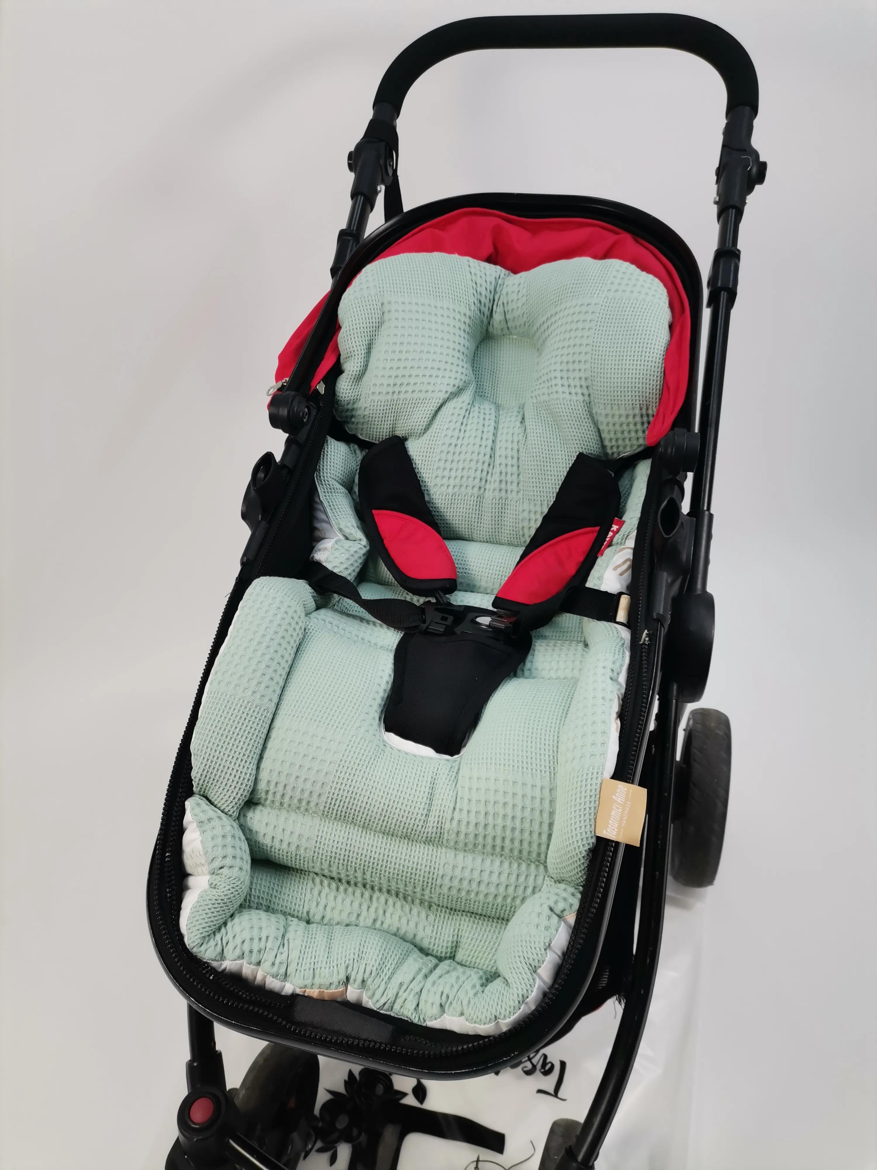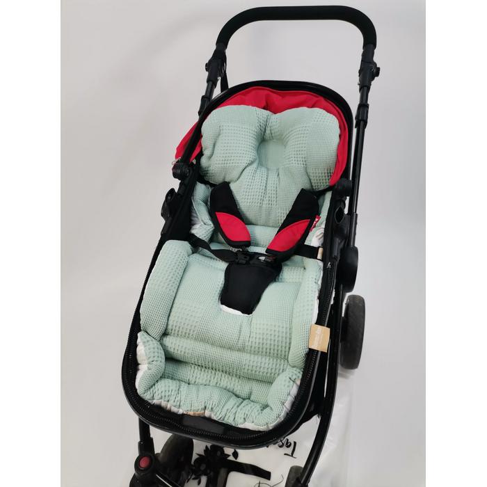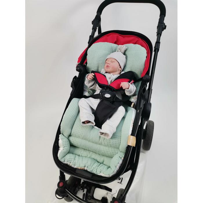 Bebek arabası minderi yeşil waffle pike - gökkuşaklı poplin