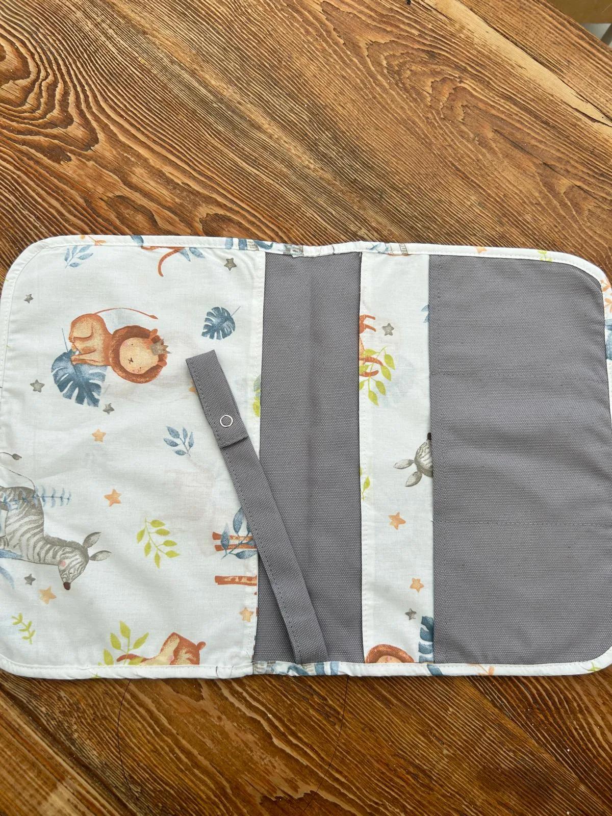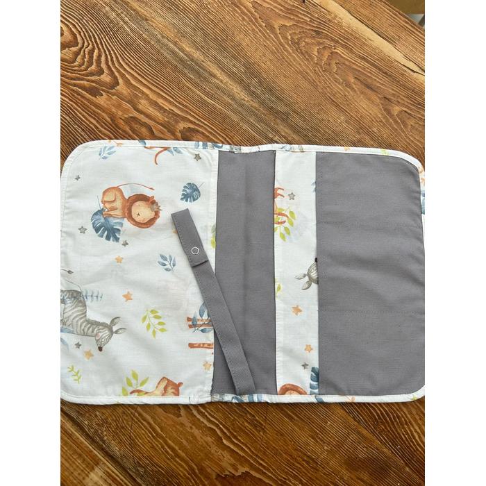 Bebek bakım çantası organizer gri - sevimli hayvanlar poplin