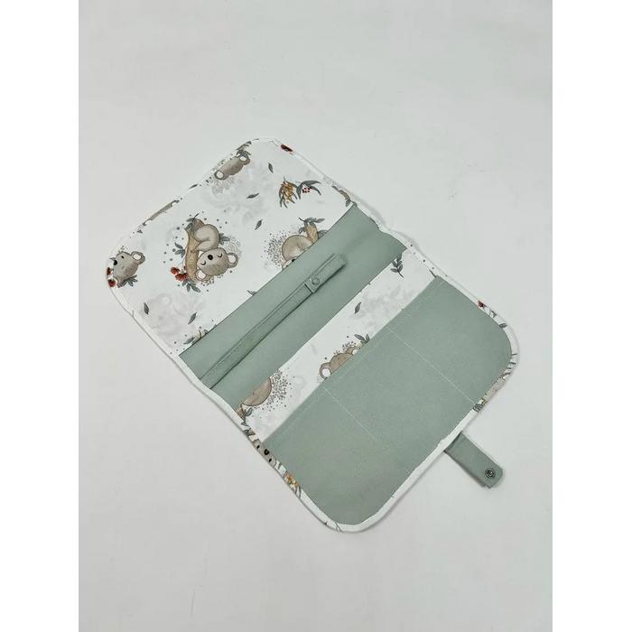 Bebek bakım çantası organizer yeşil - koala desenli poplin