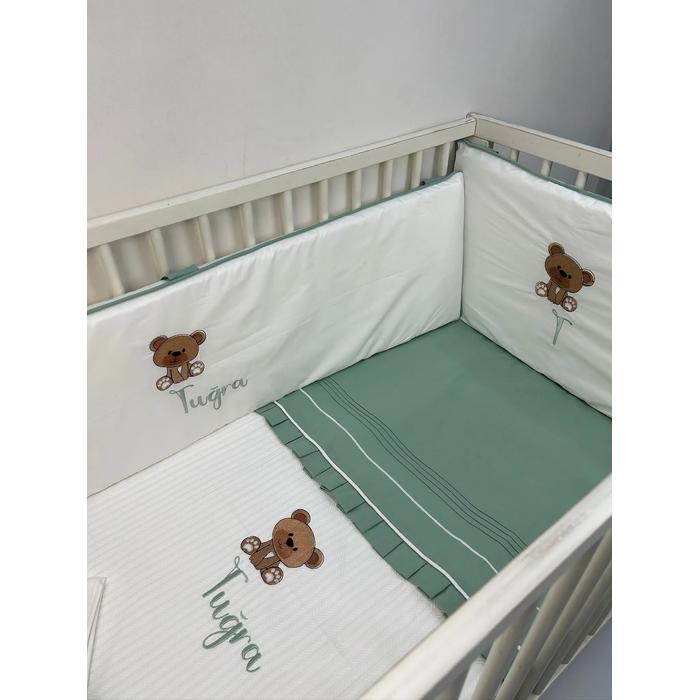 Beyaz poplin kumaştan üretilmiş, yeşil fitilli 4 parça korumalık