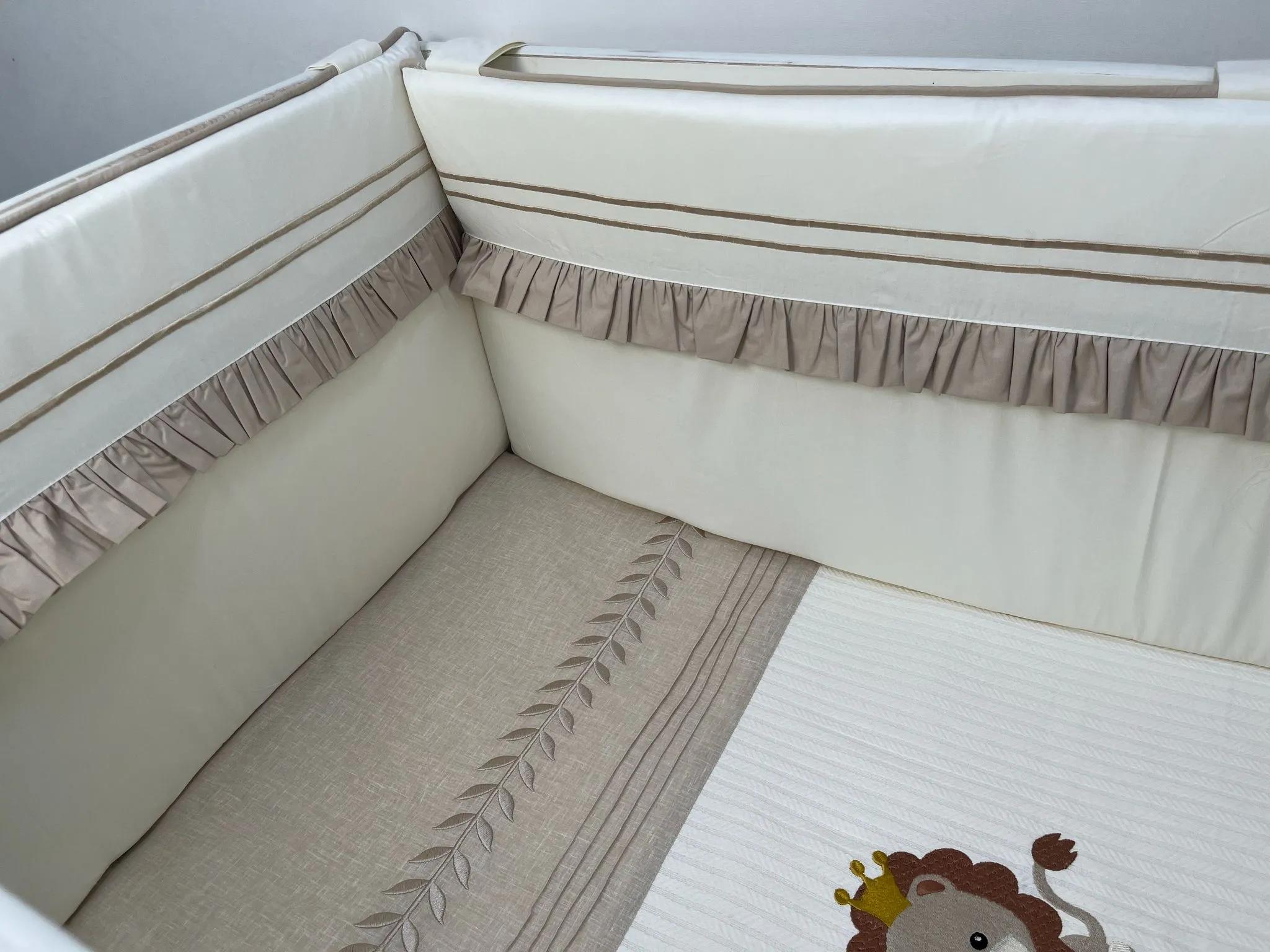Beşik korumalığı fitilli krem poplin - bej poplin fırfırlı