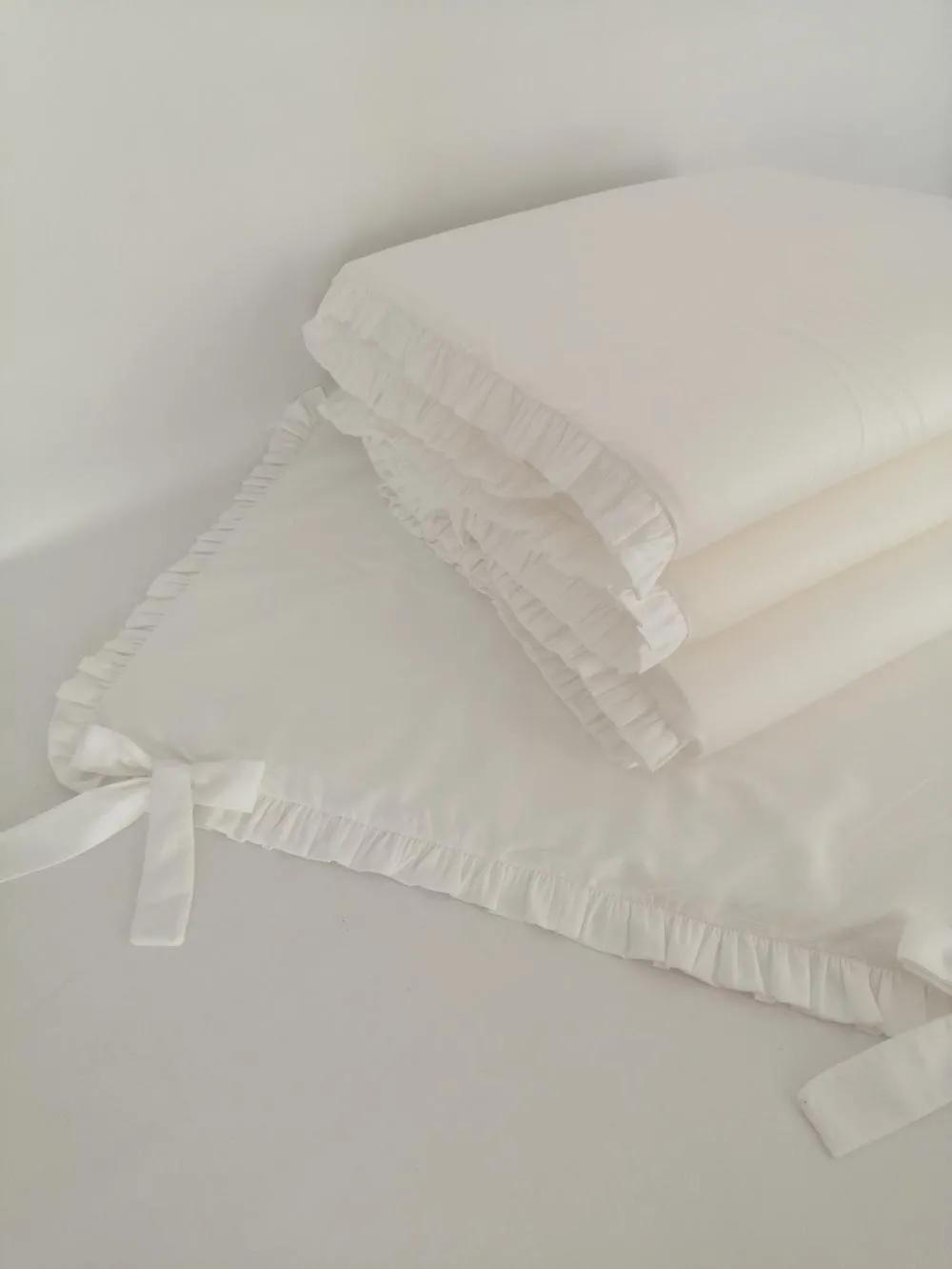 Beyaz Poplin kumaştan üretilmiş fırfır detaylı 4 parça korumalık