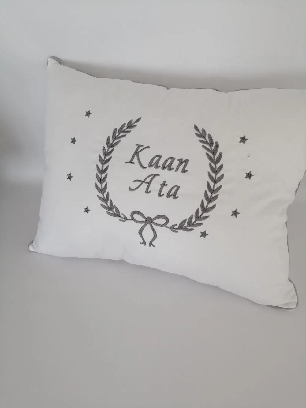 Beyaz Poplin kumaştan üretilen Nakış ve İsim İşlemeli Yastık