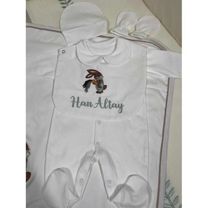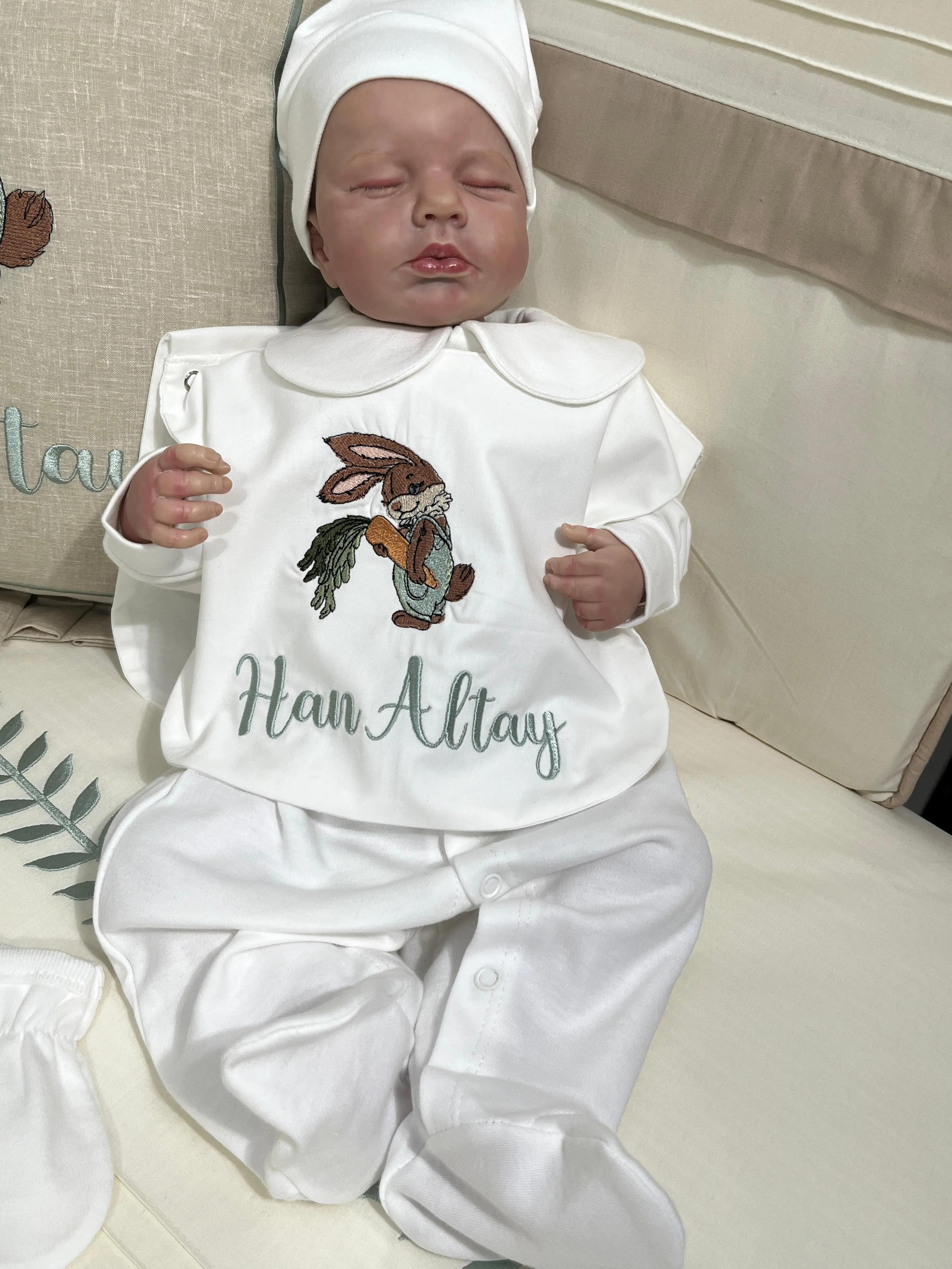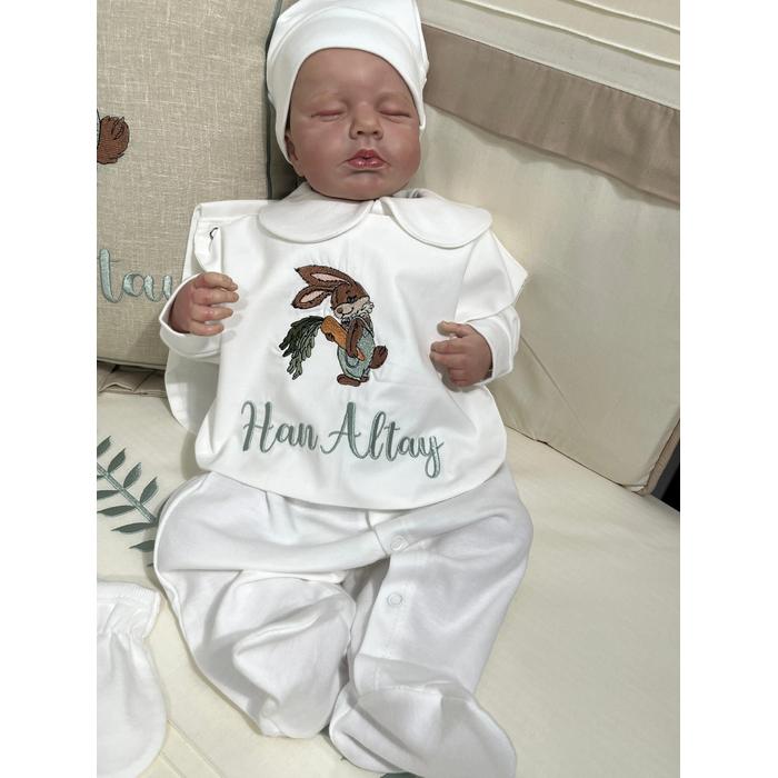 Yakalı tulum takımı önden çıtçıtlıdır ,5 parçadır ,( nakış işlenen parça ayrı bir önlük gibidir)