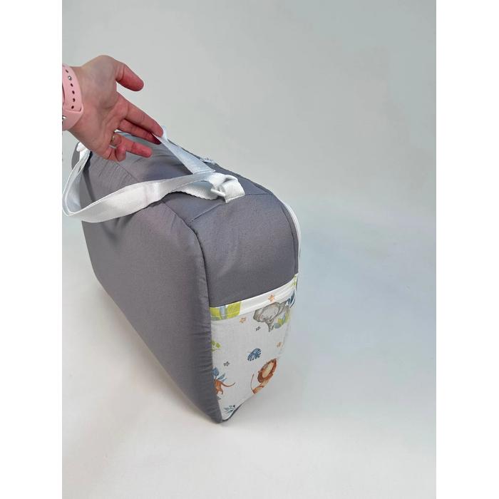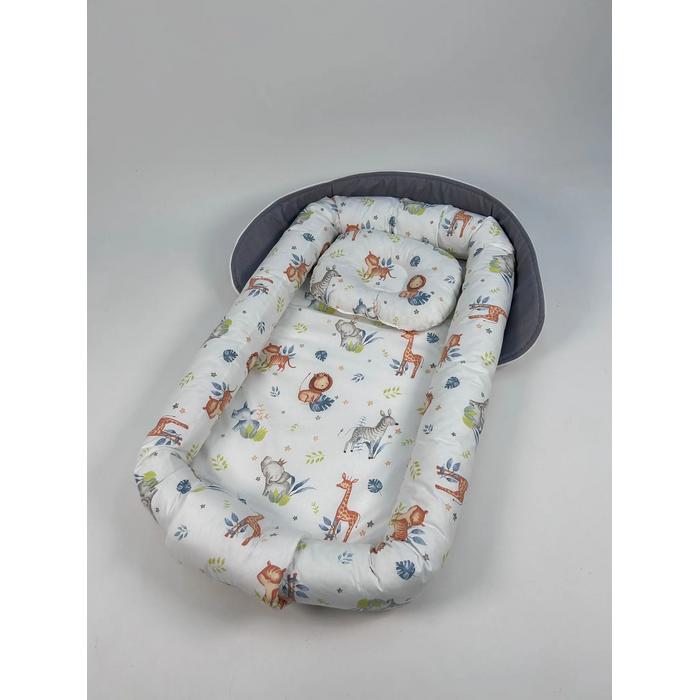Çantalı babynest gri panama keten - sevimli hayvanlar poplin