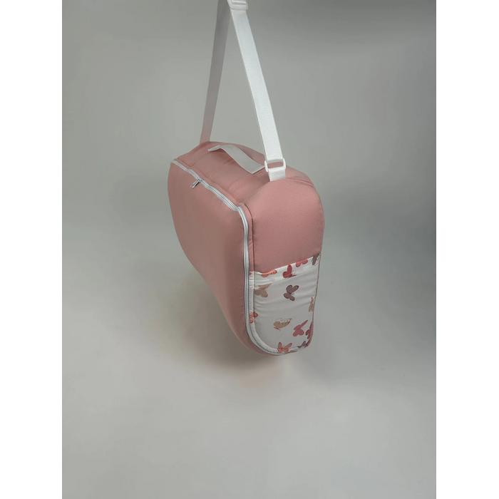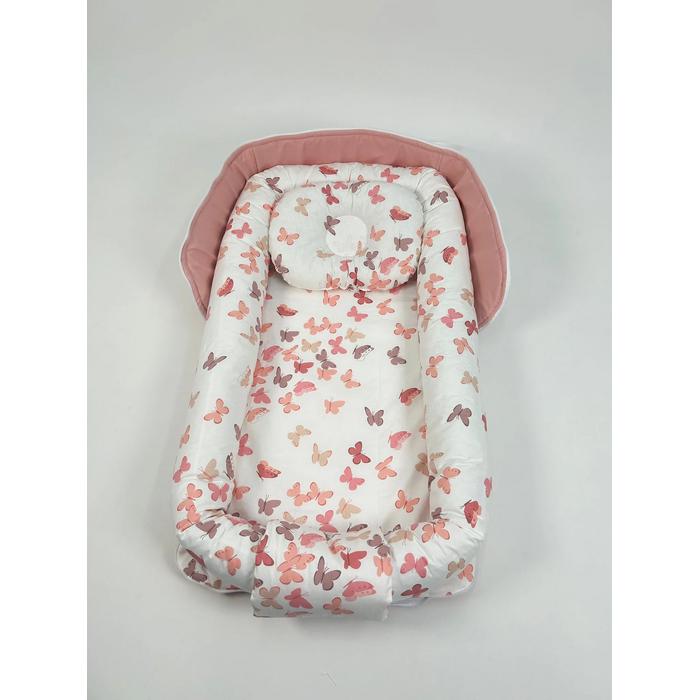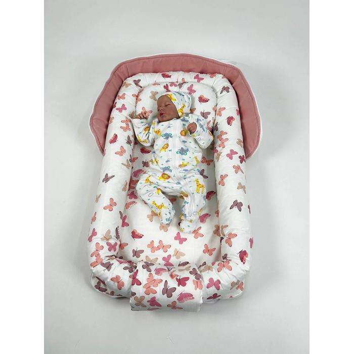 Çantalı babynest pudra pembe panama keten - pudra kelebekli poplin
