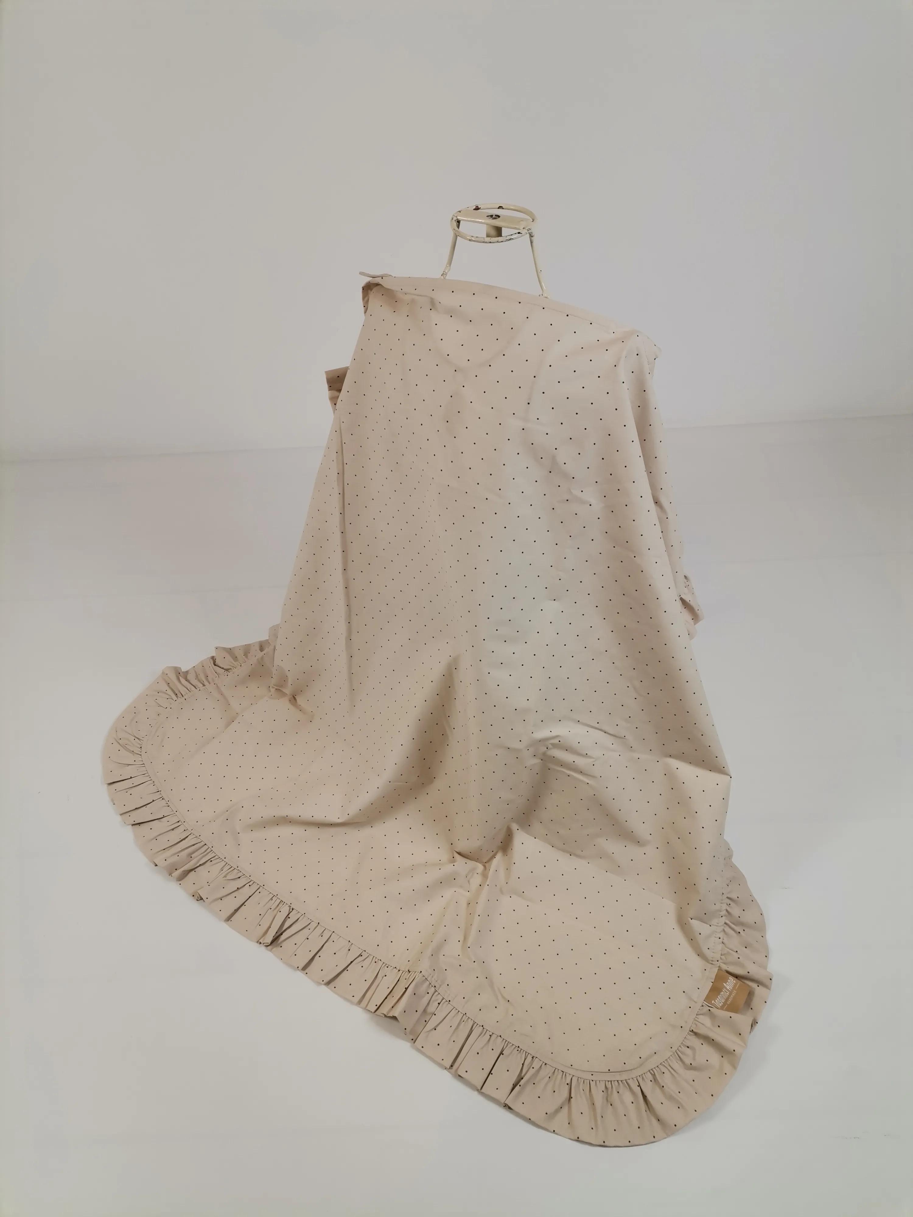 Emzirme önlüğü fırfırlı bej zemin üstü kahve rengi puantiyeli
