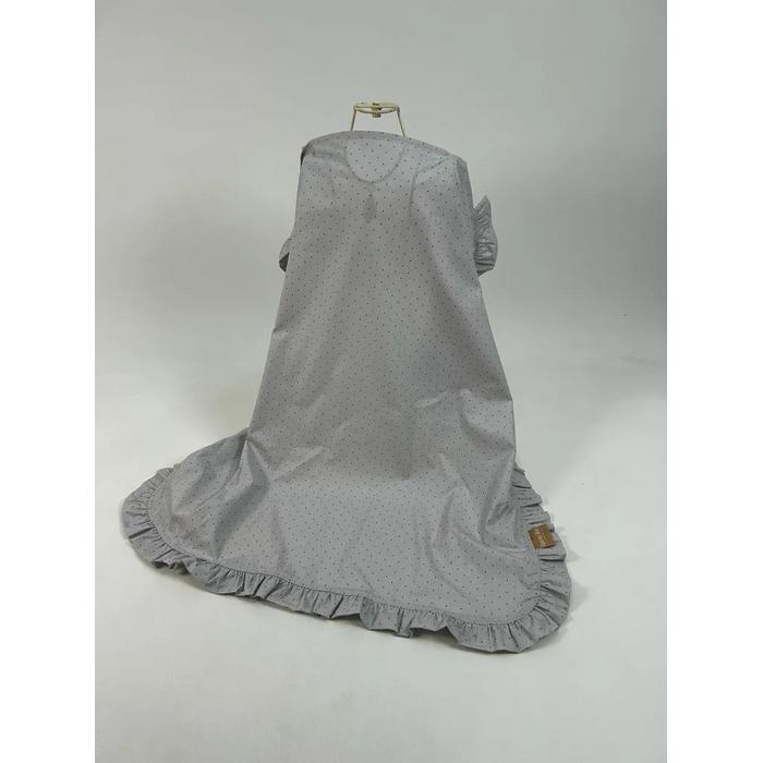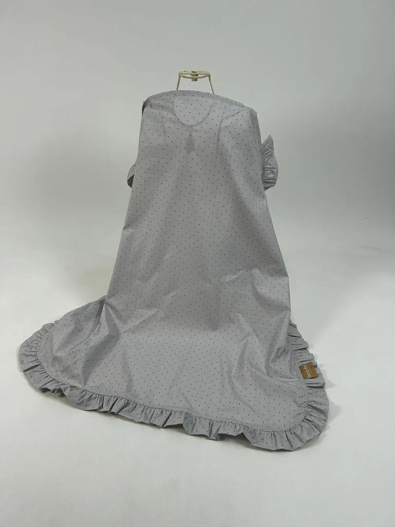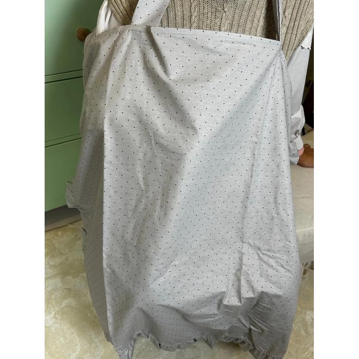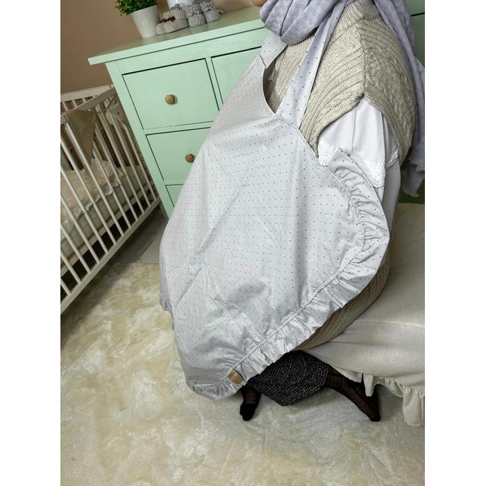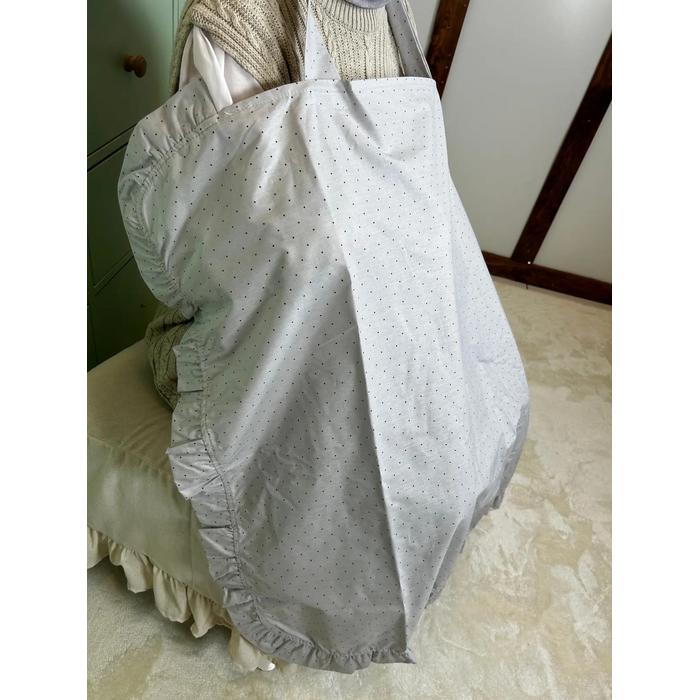 Emzirme önlüğü fırfırlı gri zemin üstü gri puantiyeli poplin