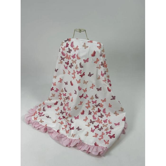 Emzirme önlüğü fırfırlı pudra kelebekli poplin - pembe poplin