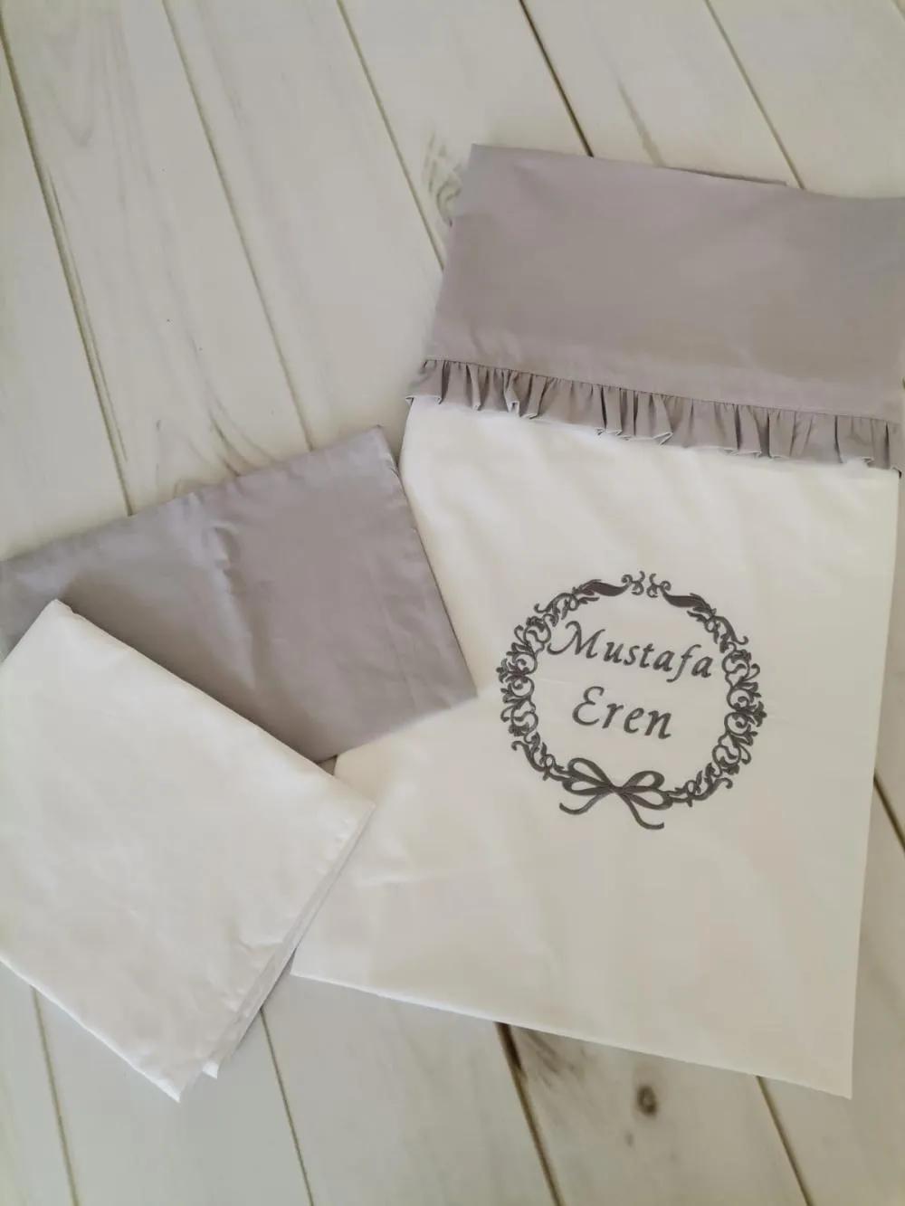 Gri - Beyaz Poplin kumaştan üretilen Fırfırlı Nevresim Takımı içeriği ;
