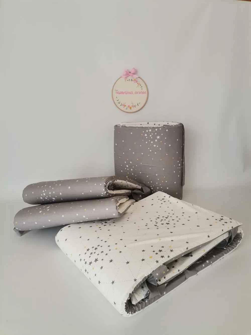 Gri beyaz samanyolu yıldızlı kumaştan üretilmiş 4 parça korumalık