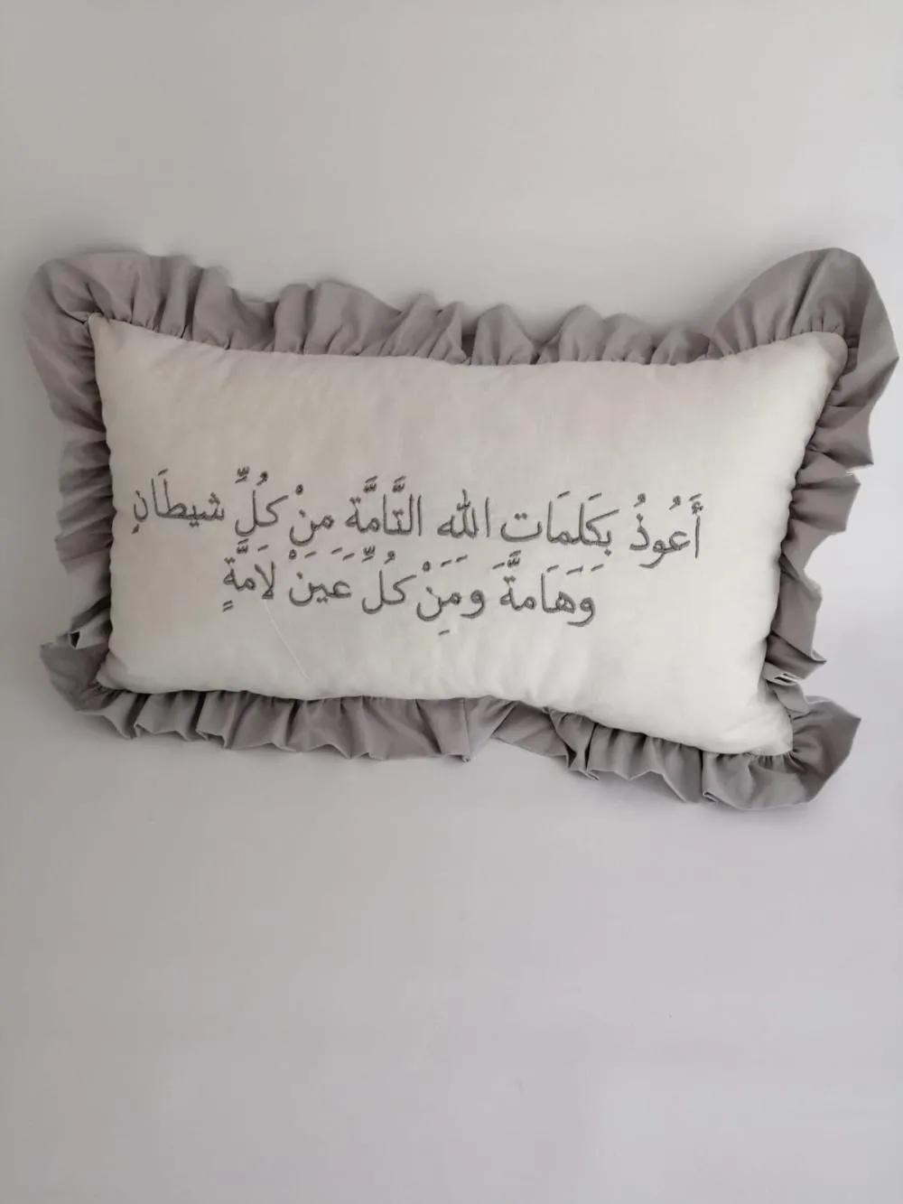 Poplin kumaştan üretilen nazar duası işlemeli fırfırlı Yastık