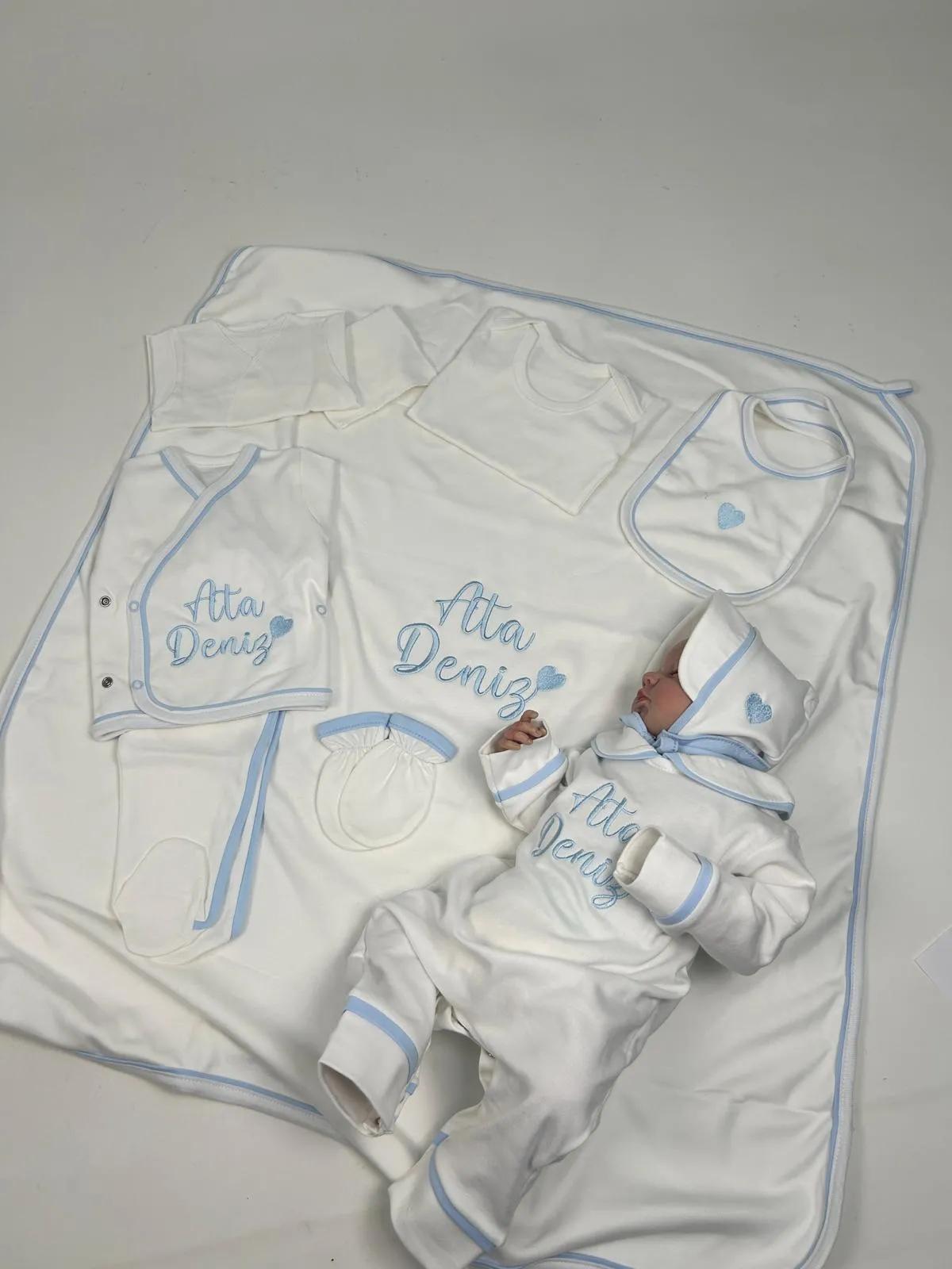 Her seti sizin için özel üretiyoruz. İsterseniz üzerine bebeğinizin ismini ve özel desen işlemelerini ekliyoruz. Renk seçeneklerinde sınırlama yok; zevkinize ve isteğinize göre farklı renklerde hazırlayabiliyoruz.