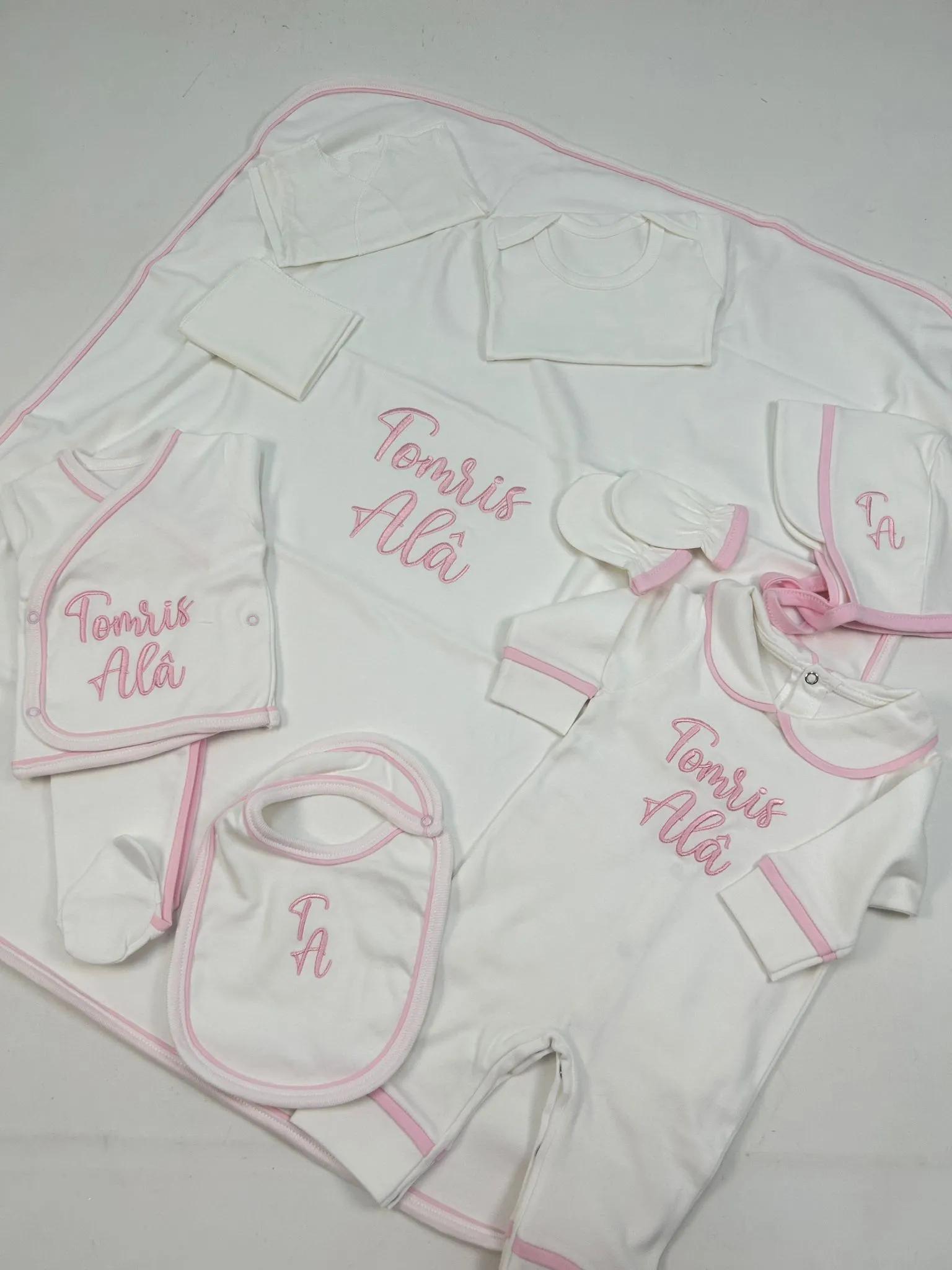 Her seti sizin için özel üretiyoruz. İsterseniz üzerine bebeğinizin ismini ve özel desen işlemelerini ekliyoruz. Renk seçeneklerinde sınırlama yok; zevkinize ve isteğinize göre farklı renklerde hazırlayabiliyoruz.