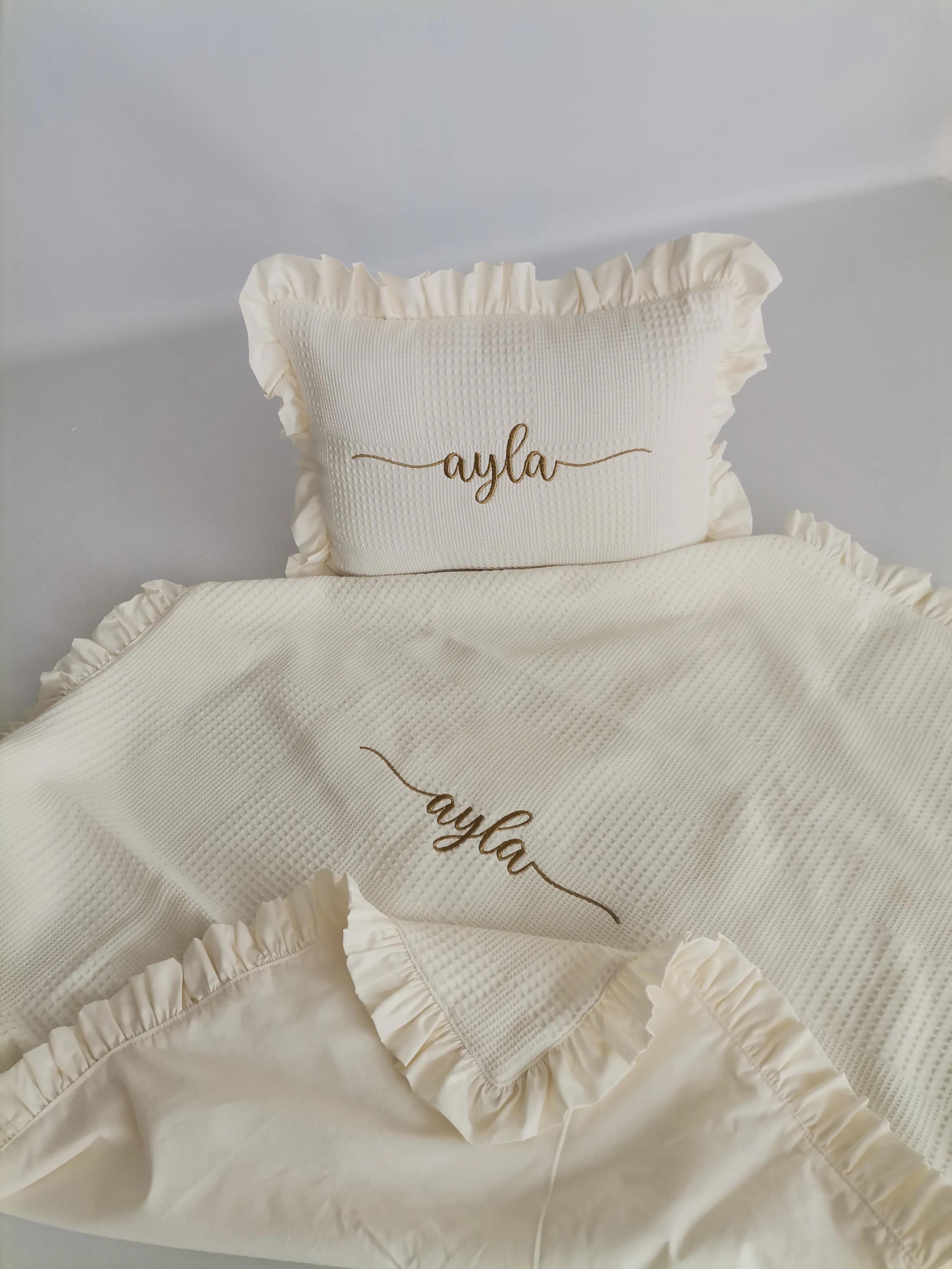 Fırfırlı isim işlemeli Battaniye:100x85 cm