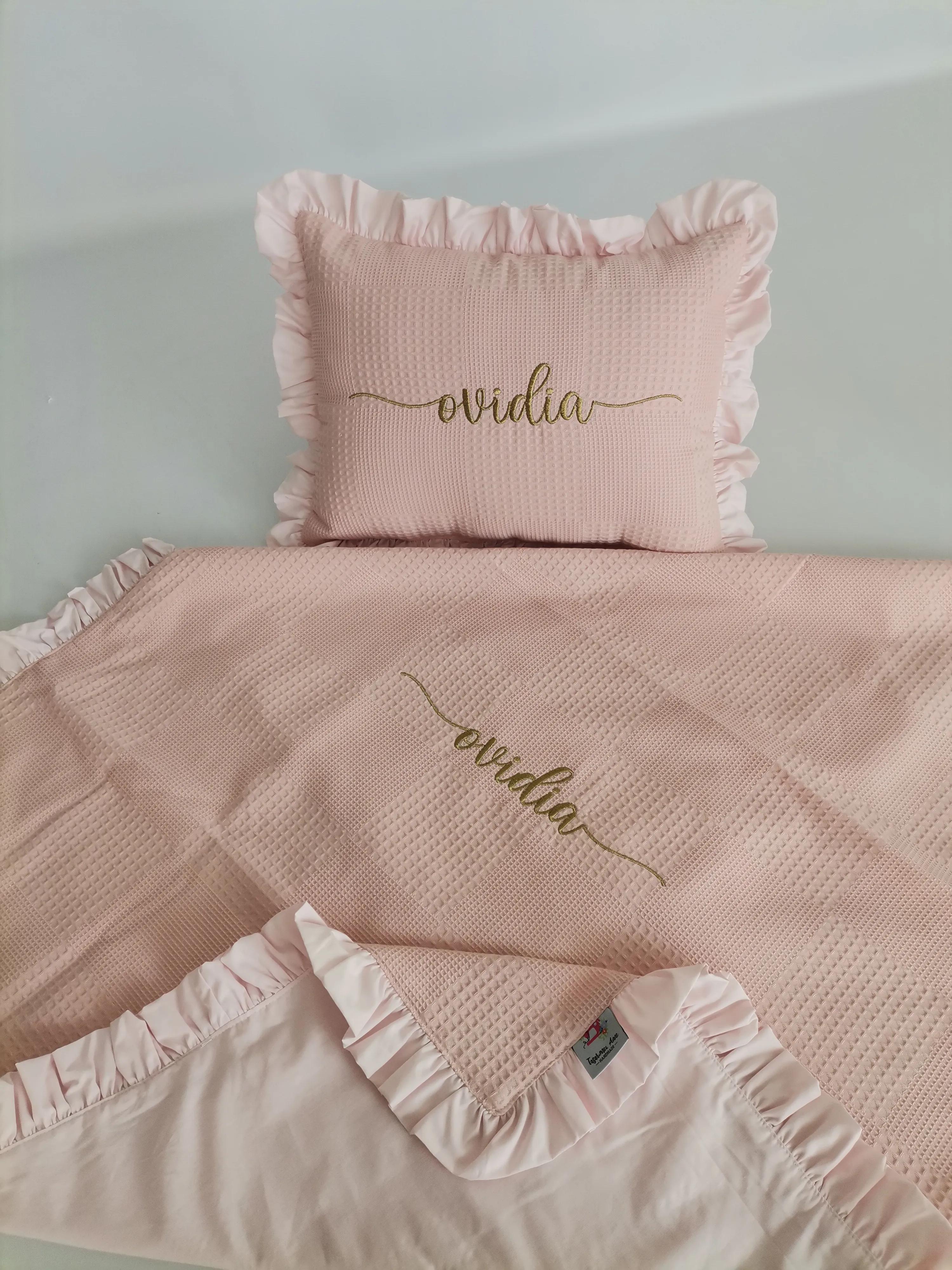 Fırfırlı isim işlemeli Battaniye:100x85 cm