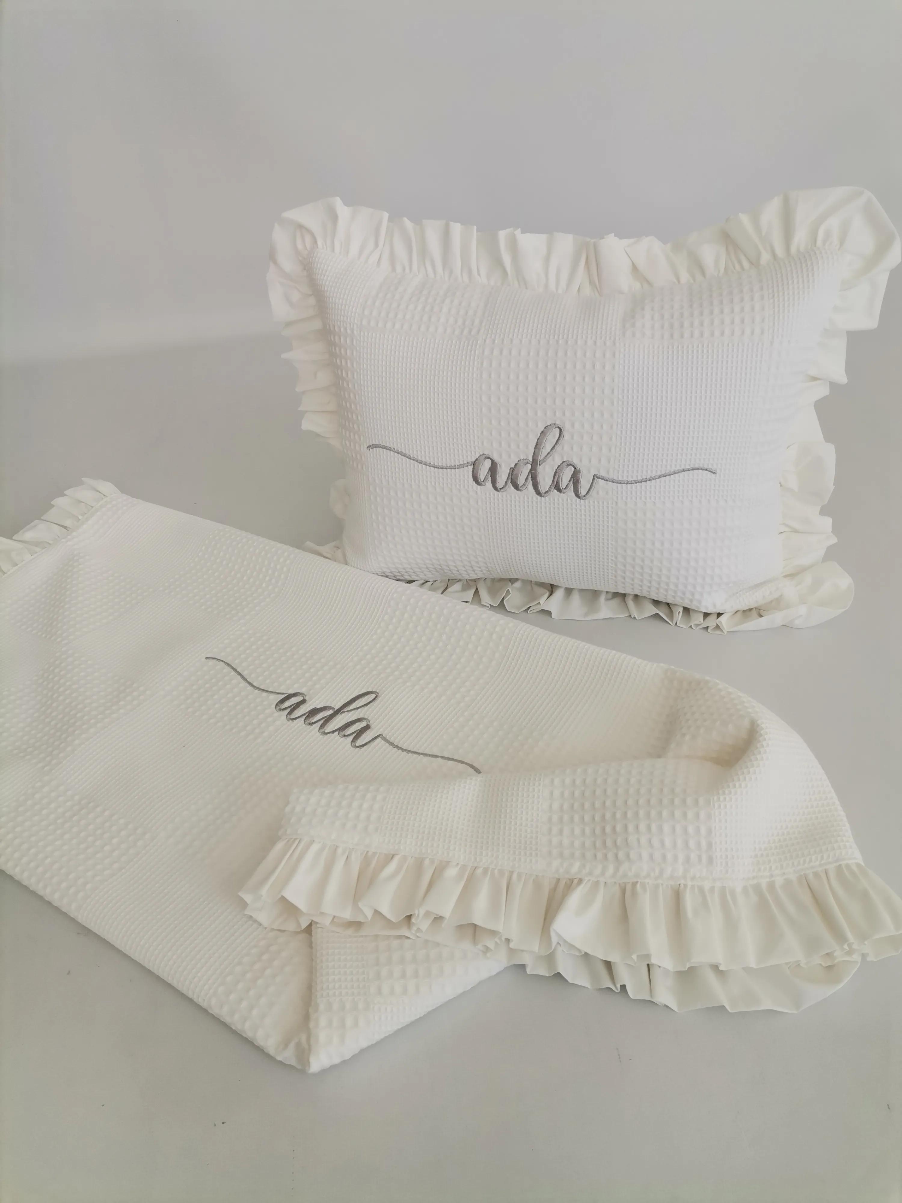 Fırfırlı isim işlemeli Battaniye:100x85 cm