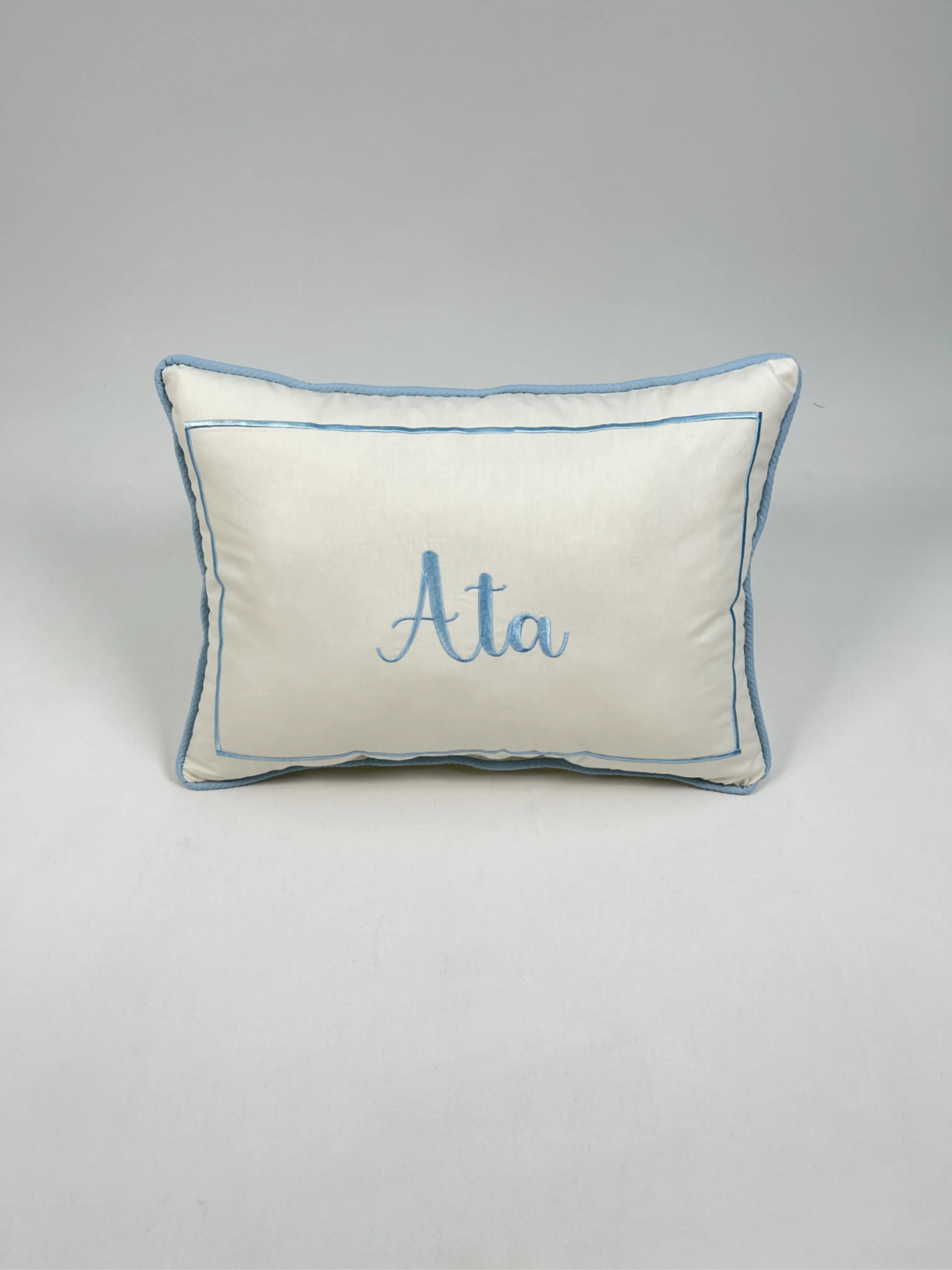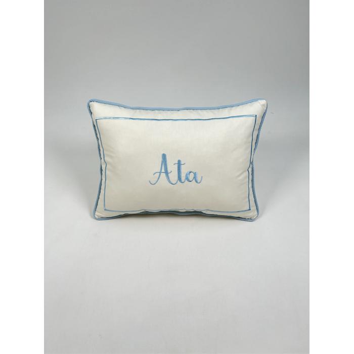 Krem Poplin kumaştan üretilen isim işlemeli fitilli süs Yastık