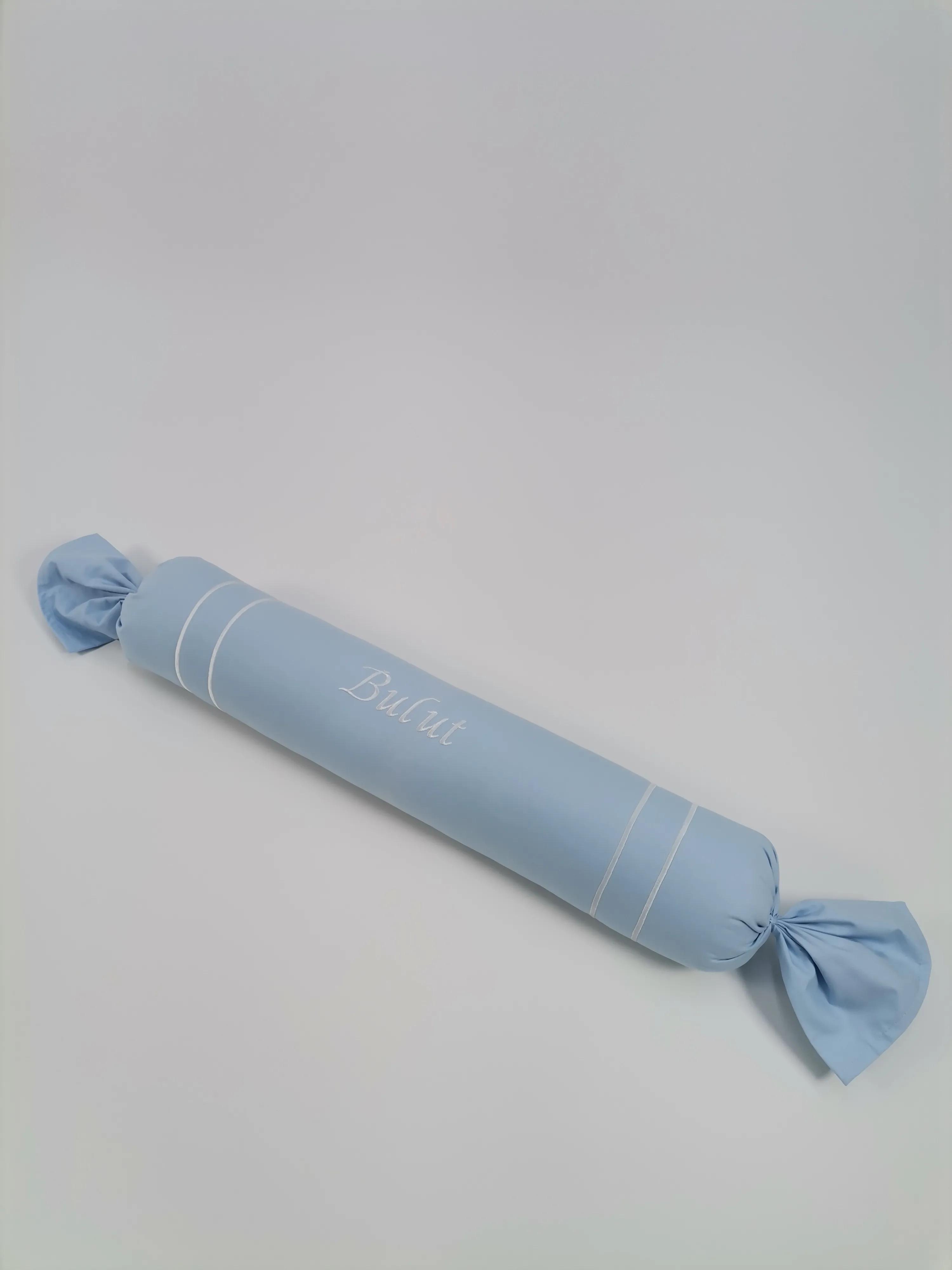 Poplin kumaştan üretilen isim işlemeli silindir şeker Yastık