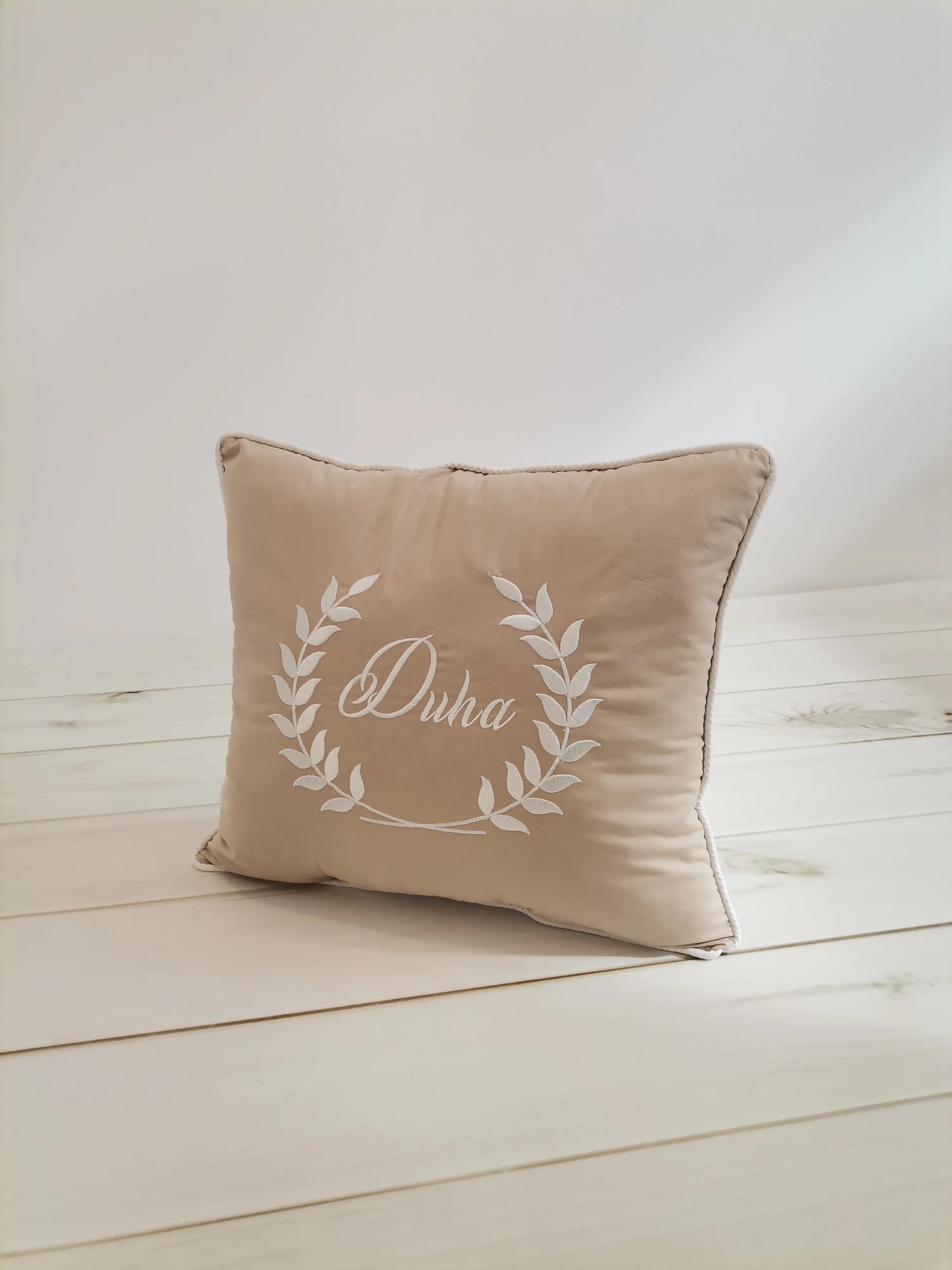Poplin kumaştan üretilen fitilli , Nakış ve İsim İşlemeli Yastık