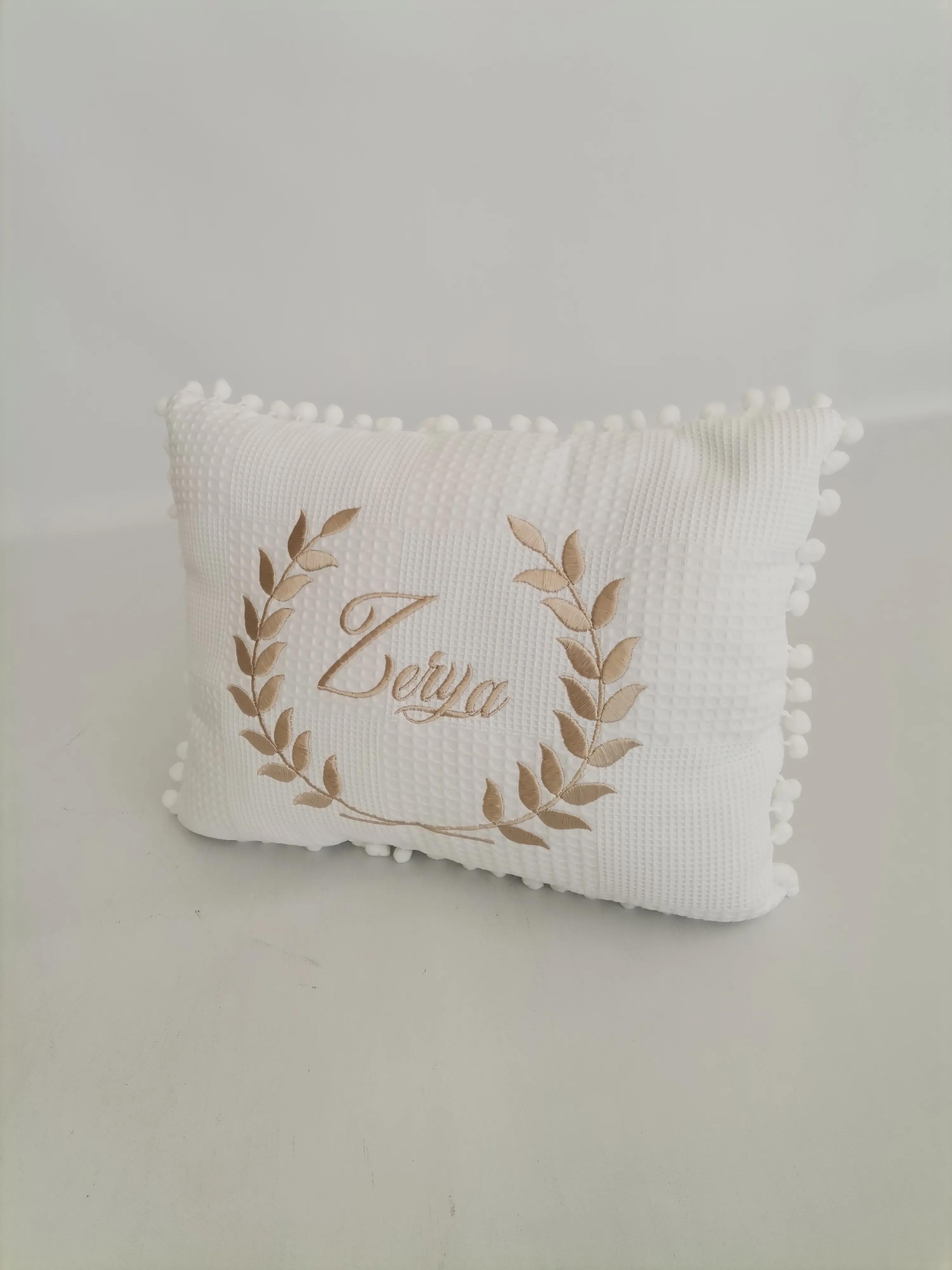 Krem klasik waffle Pike kumaştan üretilen Nakış ve İsim İşlemeli Yastık