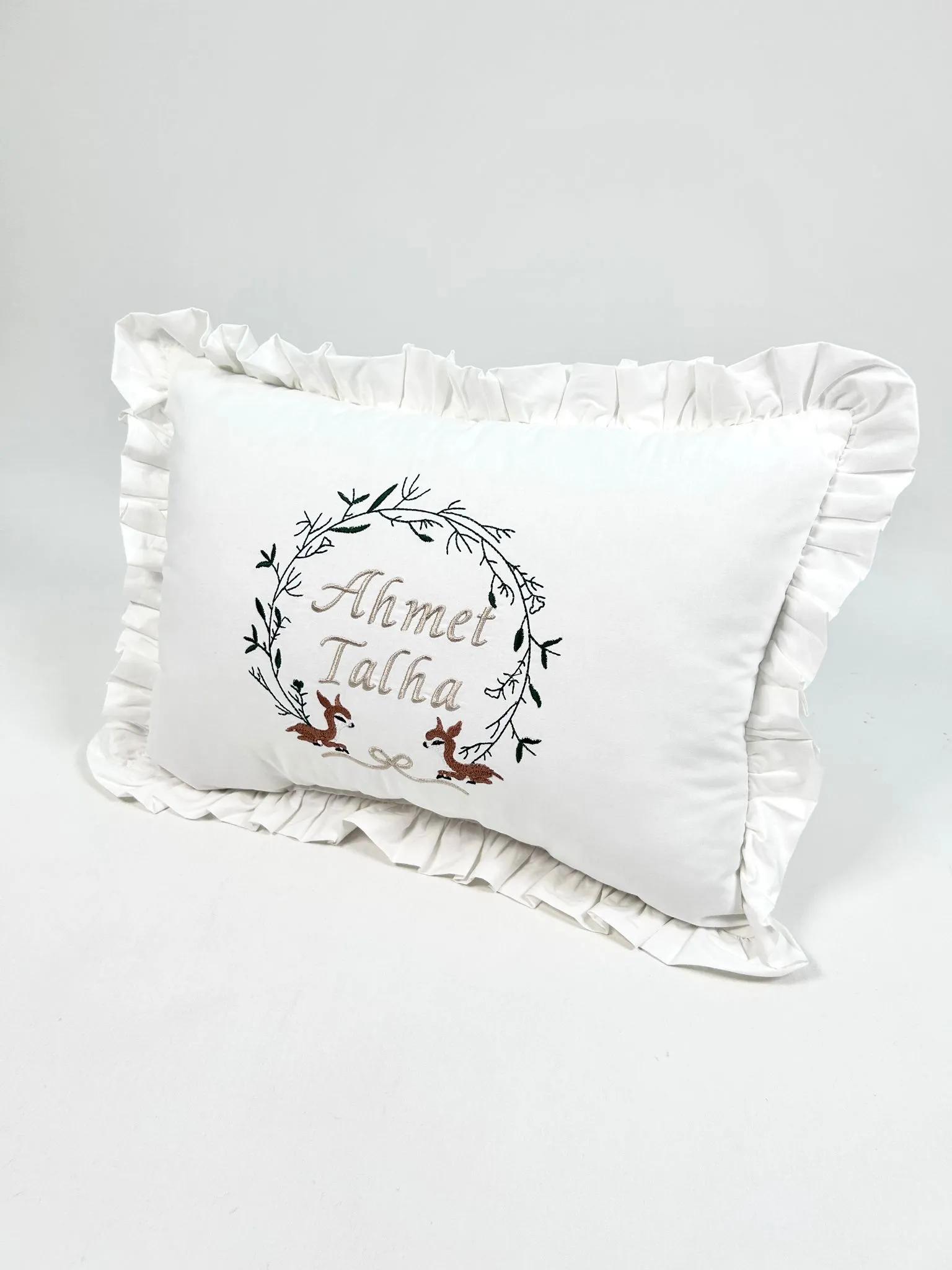 %100 pamuklu poplin kumaştan üretilen İsim ve desen İşlemeli Yastık