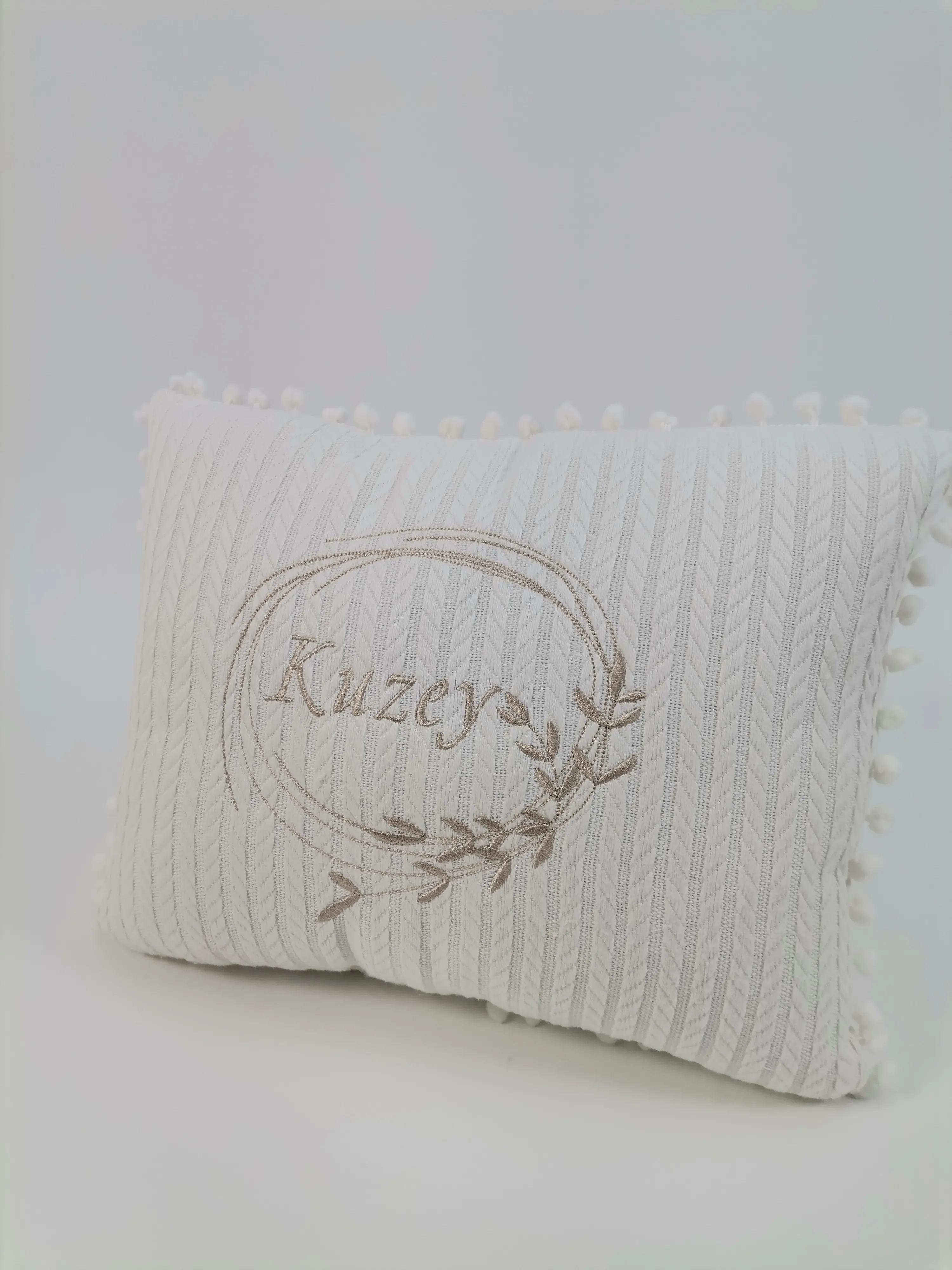 Krem klasik waffle Pike kumaştan üretilen Nakış ve İsim İşlemeli Yastık