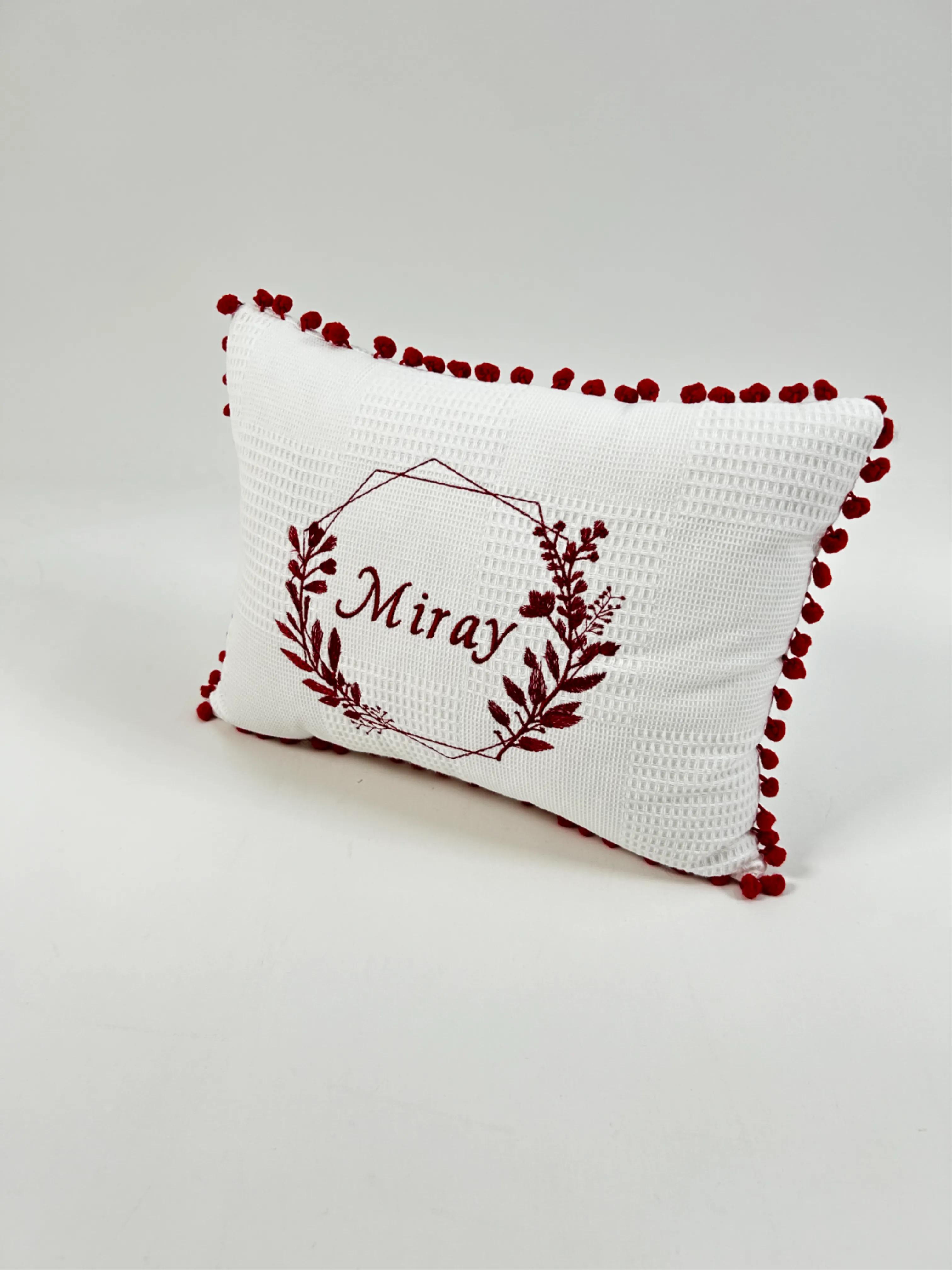 Waffle pike kumaştan üretilen isim ve desen işlemeli Yastık